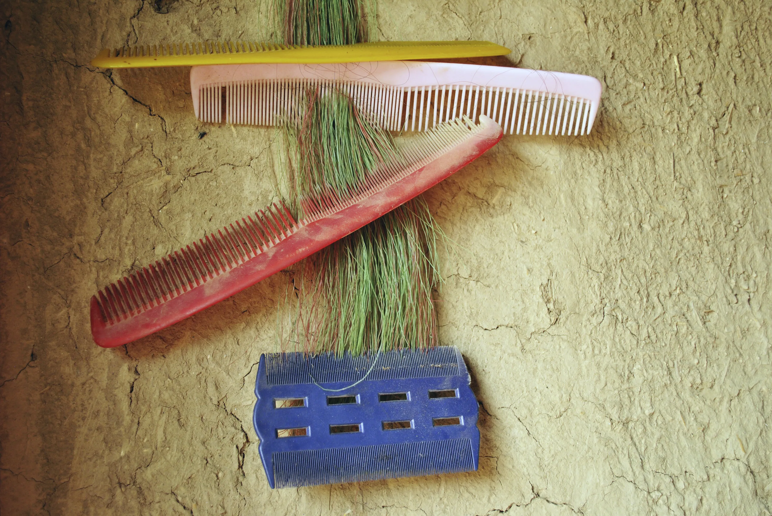 In this Wednesday, June 27, 2018, photo, Ansa Khan and her sisters' combs are hang on the the mud wall of their house in Mardan, Pakistan. Since 2012 the United Nations has reserved Oct. 11 as the International day of the Girl Child “to recognize girls’ rights and the unique challenges girls face around the world”. This year the theme is employable skills for girls, particularly in the poorer economies. (Photo by Saba Rehman/AP Photo)