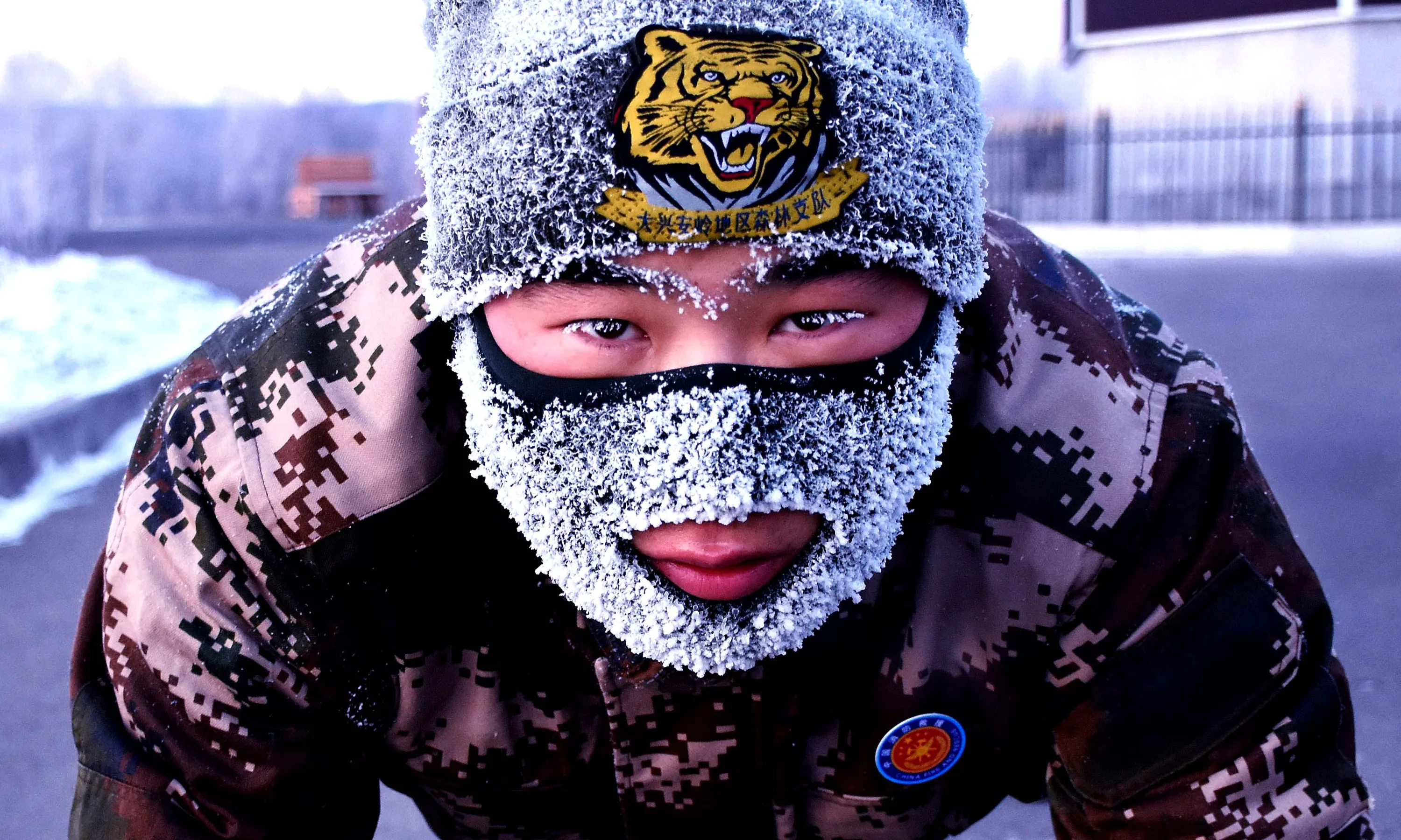 Chinese firefighters take part in a training session in Huzhong, China's coldest town, at Greater Khingan Range in Huzhong, China on November 21, 2018. (Photo by Imaginechina/Rex Features/Shutterstock)