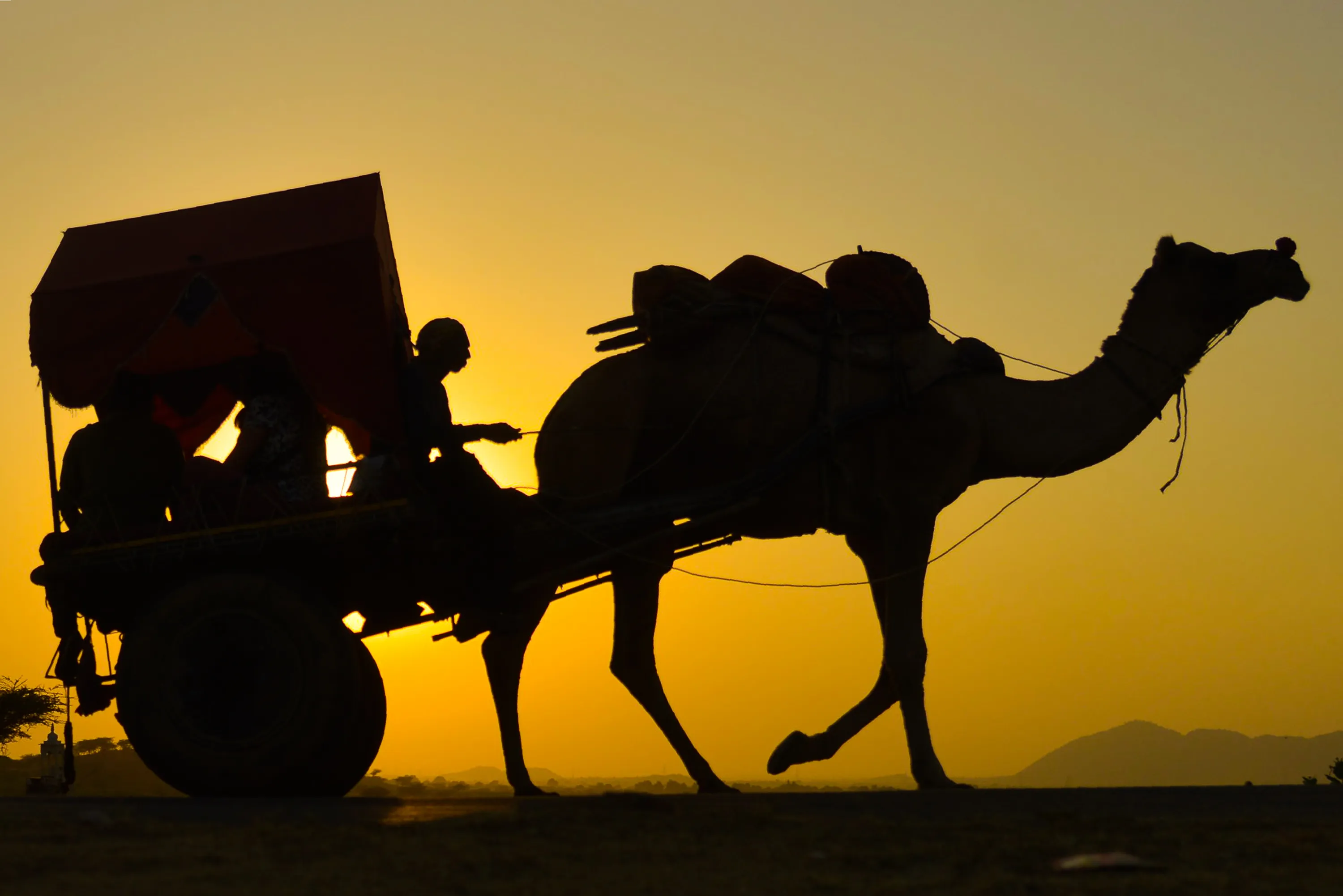 An Indian man rides on a camel cart during at the Pushkar Camel Fair in Pushkar, in the western state of Rajasthan on November 12, 2018. Thousands of livestock traders from the region come to the traditional camel fair where livestock, mainly camels, are traded. The annual five-day camel and livestock fair is one of the world's largest camel fairs. (Photo by Shaukat Ahmed/AFP Photo)