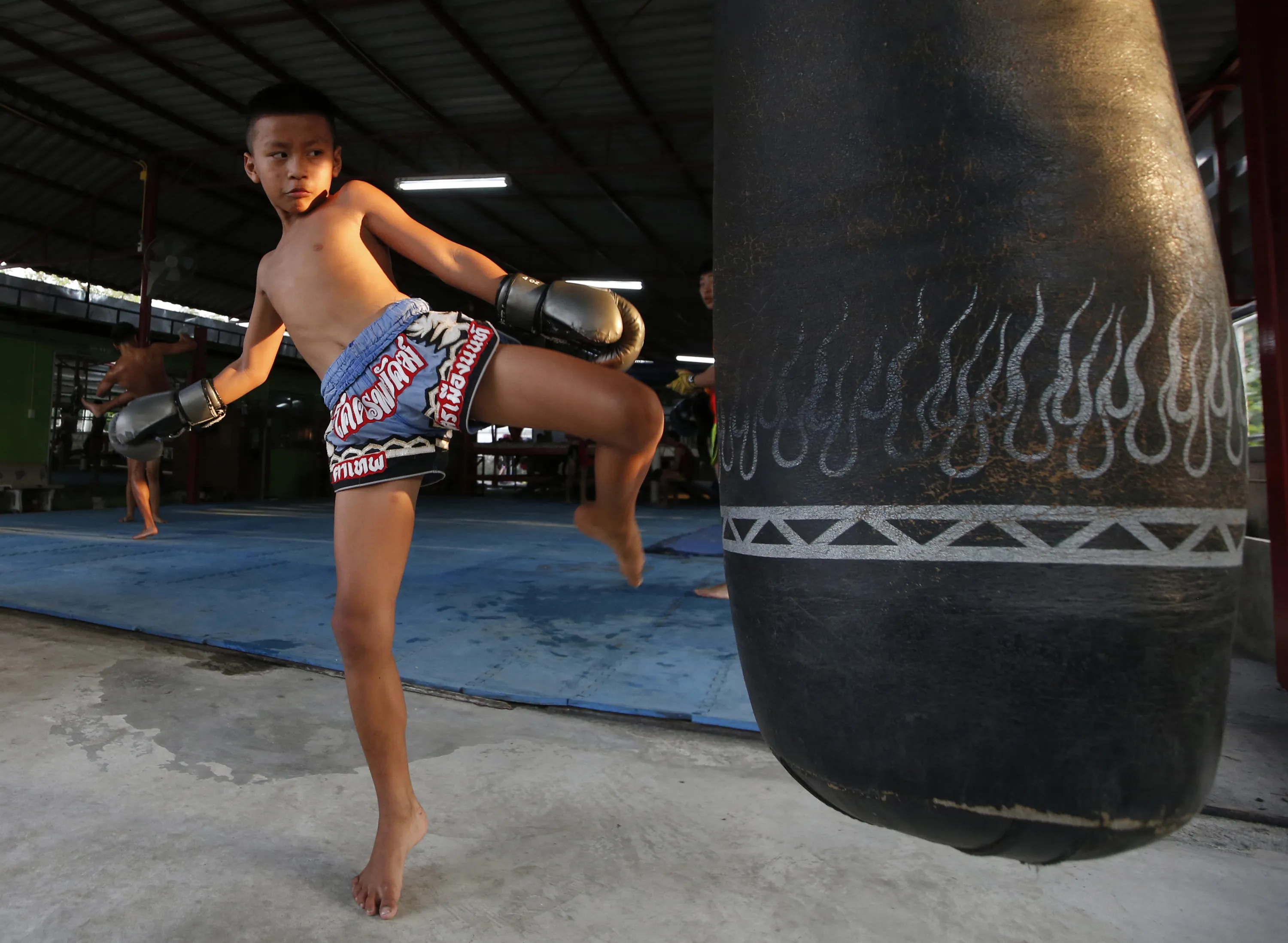 In this Wednesday, November 14, 2018, photo, Thai kickboxer Chaichana Saengngern, 10-years old, practices kicks at a training camp in Bangkok, Thailand. Thai lawmakers recently suggested barring children younger than 12 from competitive boxing, but boxing enthusiasts strongly oppose the change. They say the sport is part of Thai culture and gives poor families the opportunity to raise a champion that will lift their economic circumstances. (Photo by Sakchai Lalit/AP Photo)