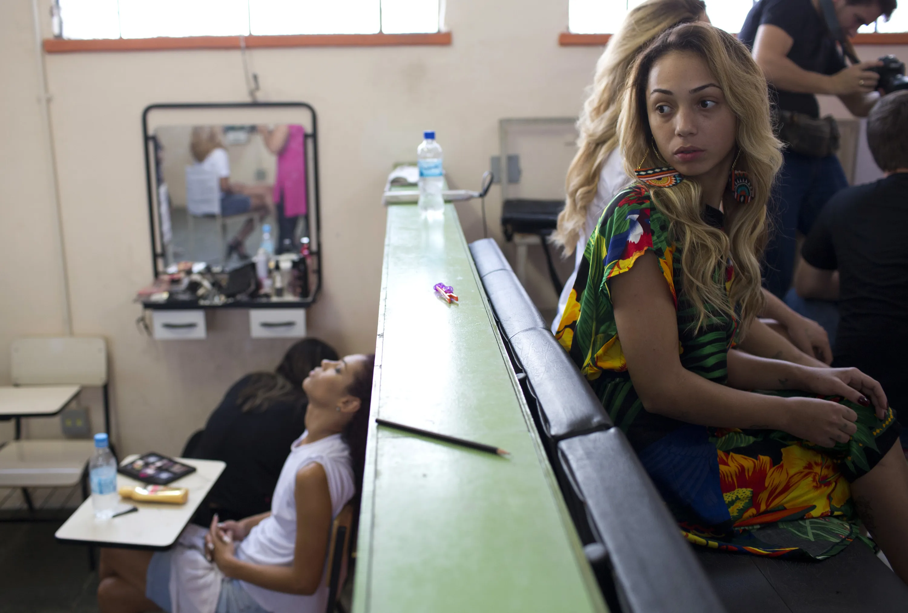Inmates wait to have their hair styled and make up done to compete in the 13th annual Miss Talavera Bruce beauty pageant at the penitentiary the pageant is named for, in Rio de Janeiro, Brazil, Tuesday, December 4, 2018. Hairdressers and makeup artists volunteer their time to ready the contestants who are judged on their beauty, appeal and attitude. (Photo by Silvia Izquierdo/AP Photo)
