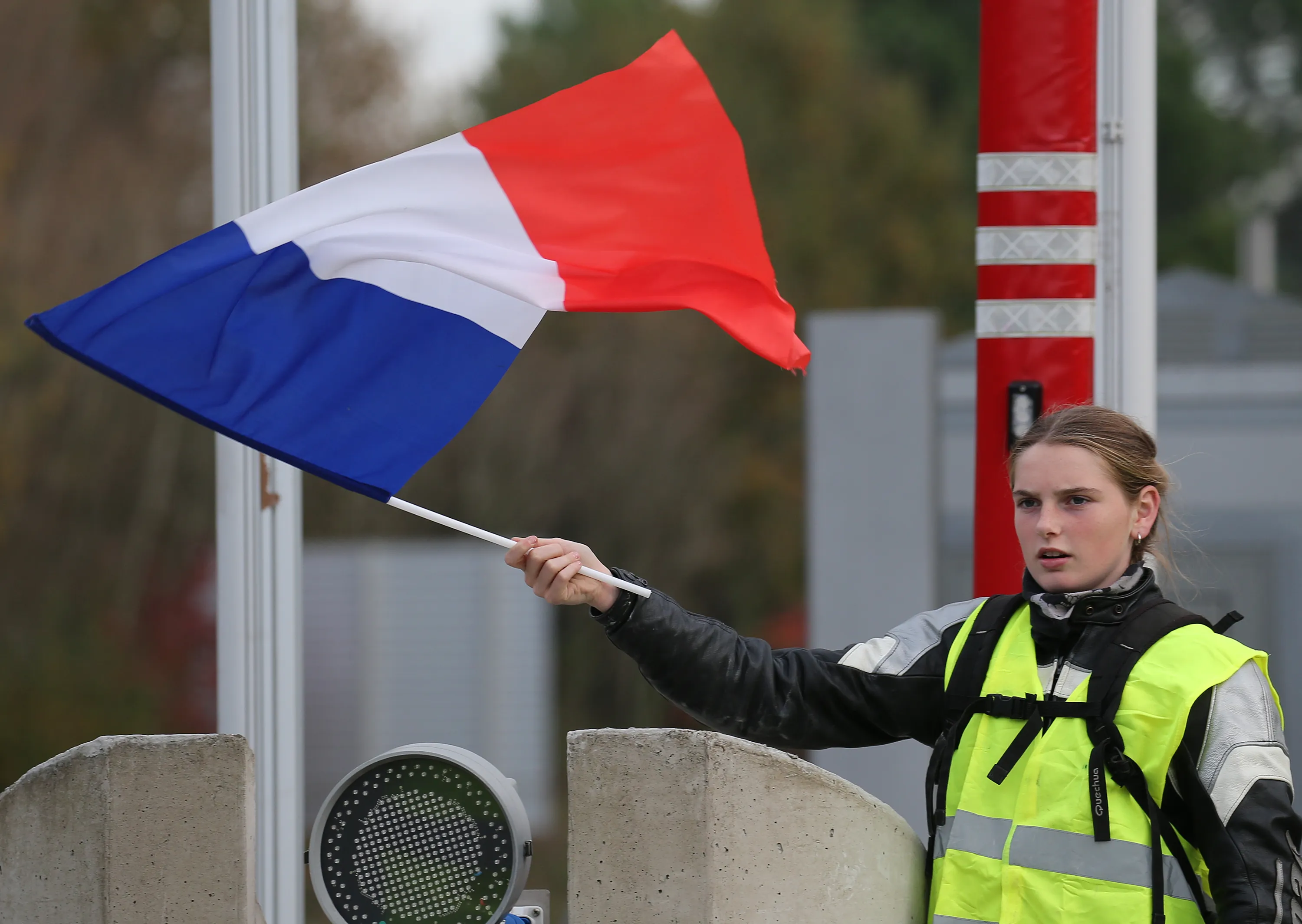 A demonstrator holds a french flag at the toll gates on a motorway at Biarritz southwestern France, Wednesday, December 5, 2018.T he concessions made by French president Emmanuel Macron's government in a bid to stop the huge and violent anti-government demonstrations seemed on Wednesday to have failed to convince protesters, with trade unions and disgruntled farmers now threatening to join the fray. (Photo by Bob Edme/AP Photo)