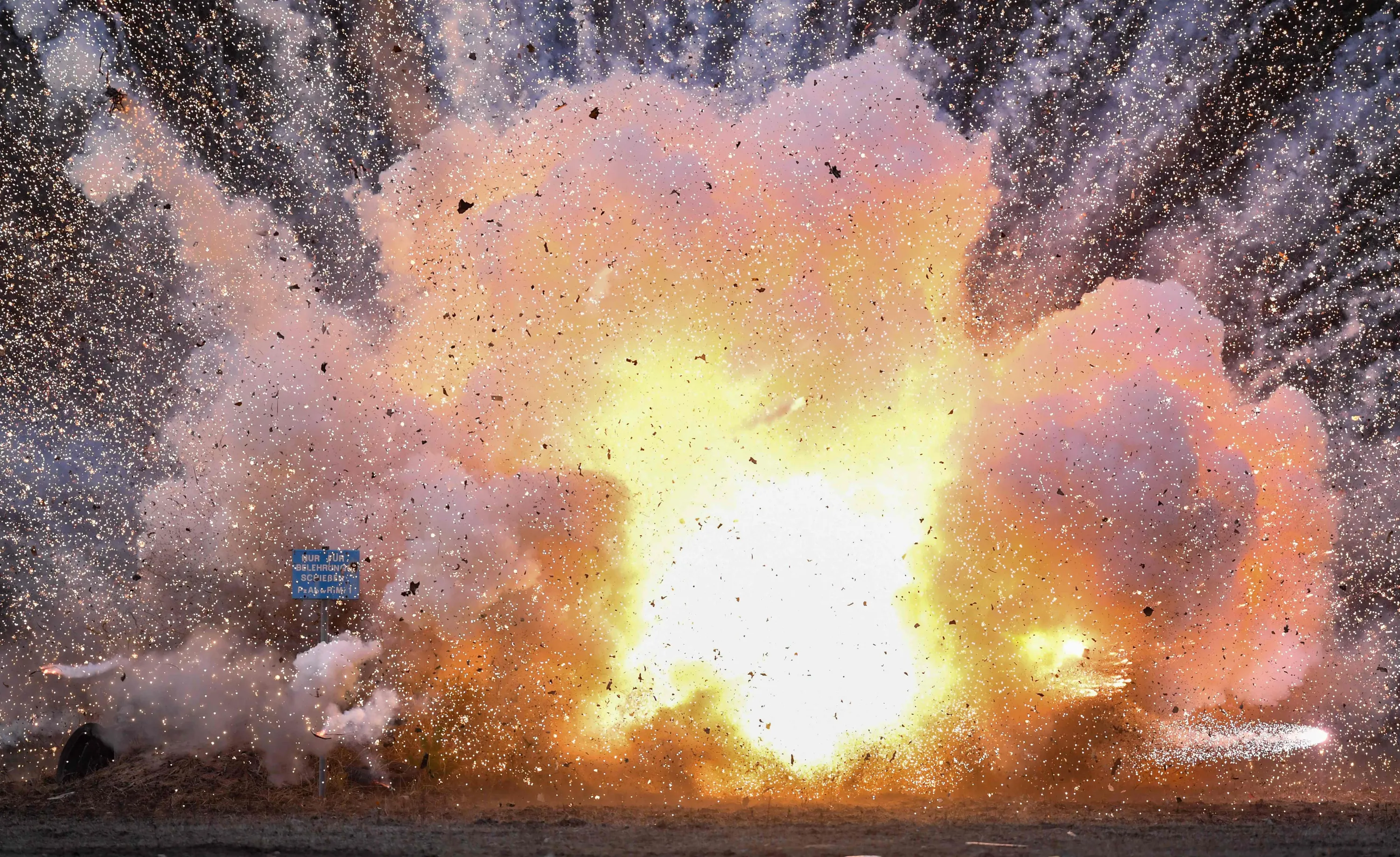 Illegal firecrackers are being detonated in a controlled explosion on December 10, 2018 in Weisskeissel, eastern Germany, close to the Polish border. (Photo by Patrick Pleul/DPA/AFP Photo)