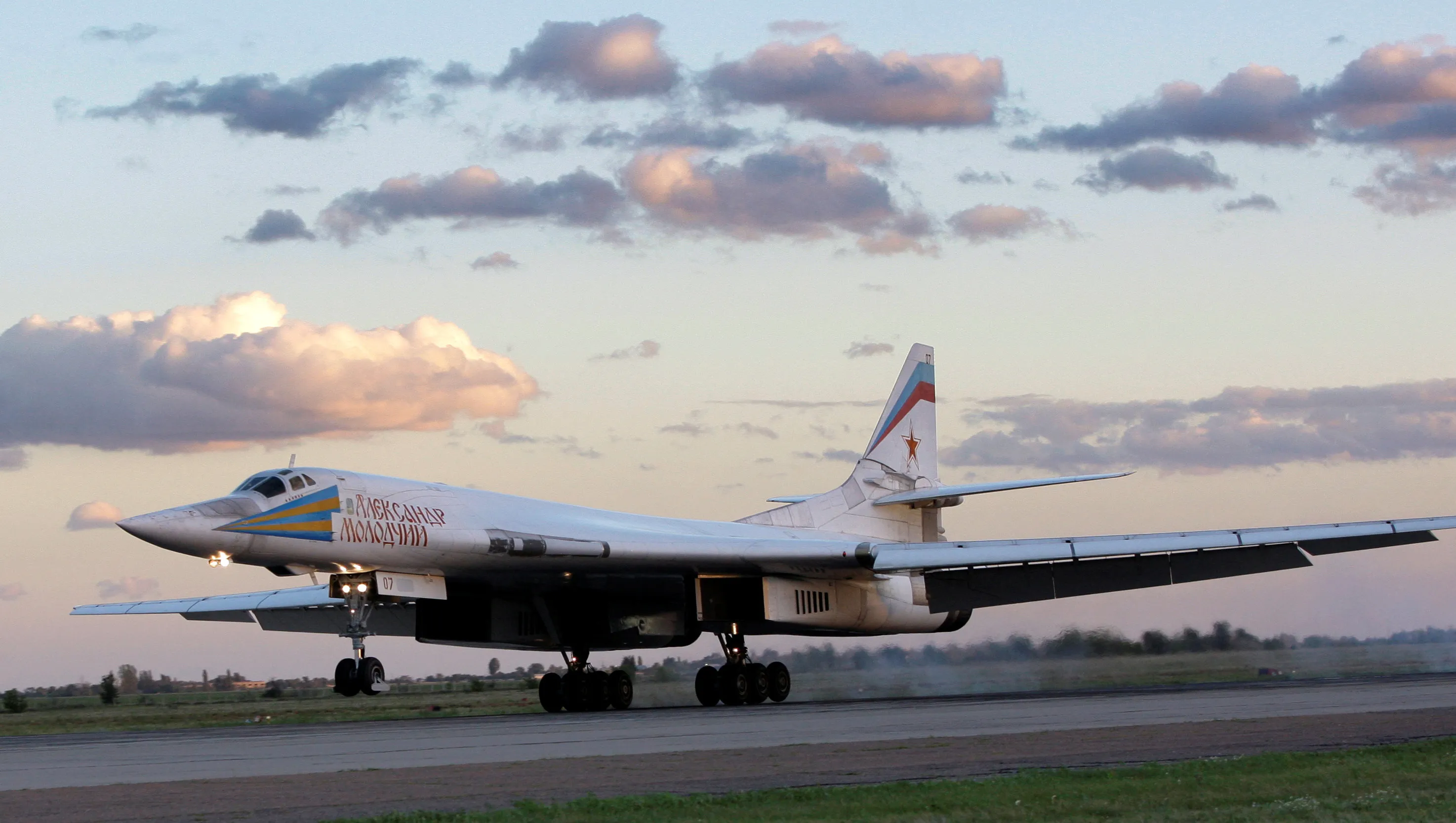 In this file photo taken on Friday, September 12, 2008, Russia's strategic bomber Tu-160 or White Swan, the largest supersonic bomber in the world, lands at Engels Air Base near Saratov, about 700 kilometers (450 miles) southeast of Moscow, Russia. The Russian military says two of its nuclear-capable strategic bombers have arrived in Venezuela, a deployment that comes amid soaring Russia-U.S. tensions. (Photo by Misha Japaridze/AP Photo)