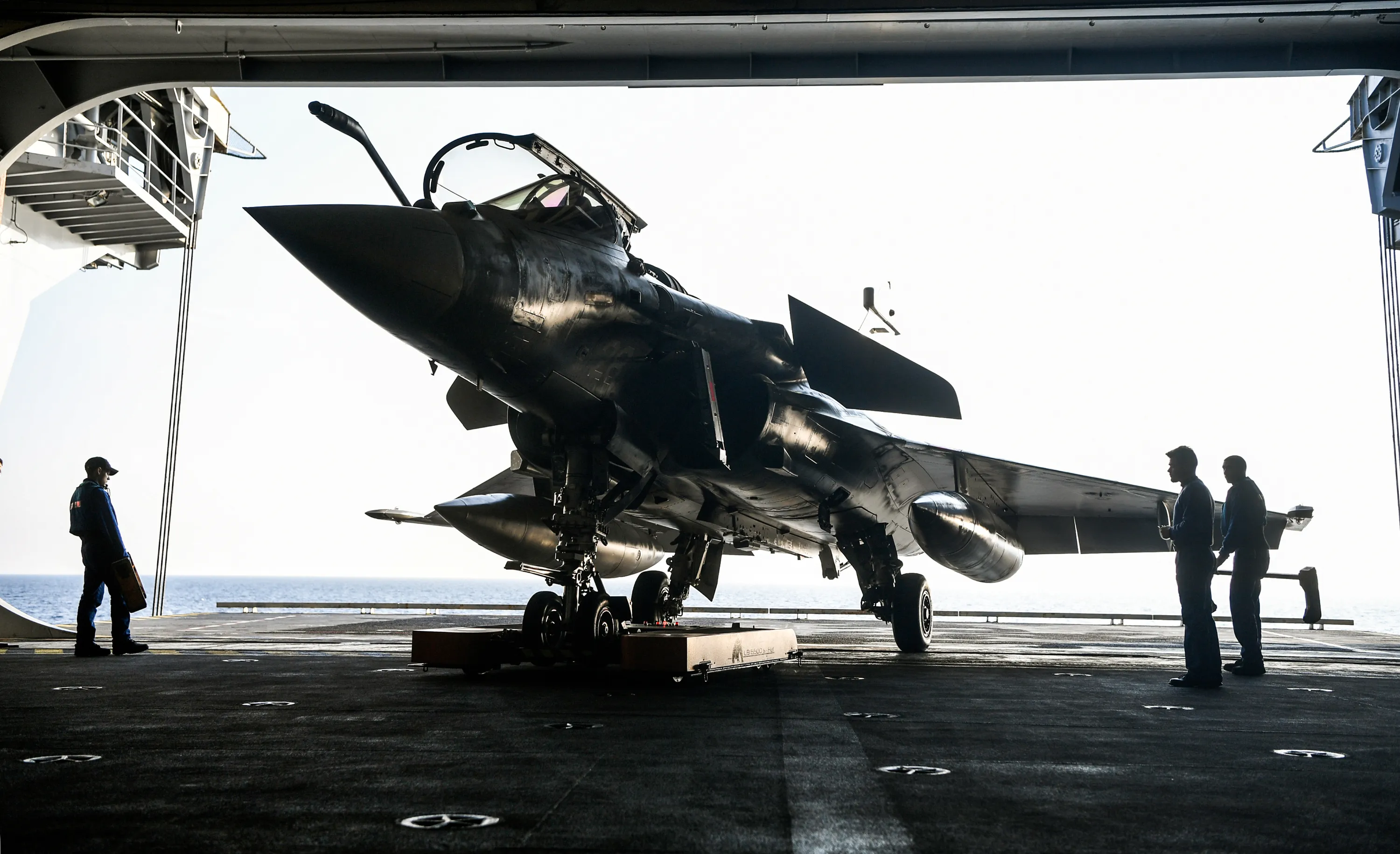 A French Navy Rafale fighter jet is seen aboard the upgraded aircraft carrier Charles de Gaulle, off the coast of Toulon, France, November 14, 2018. Europe's only nuclear-powered aircraft carrier, the 260-meter-long (850-ft) vessel, which carries 1,700 personnel and whose tonnage is equal to four Eiffel Towers, is due to be deployed in early February 2019 in the Indian Ocean, according to military sources. (Photo by Christophe Simon/Reuters)