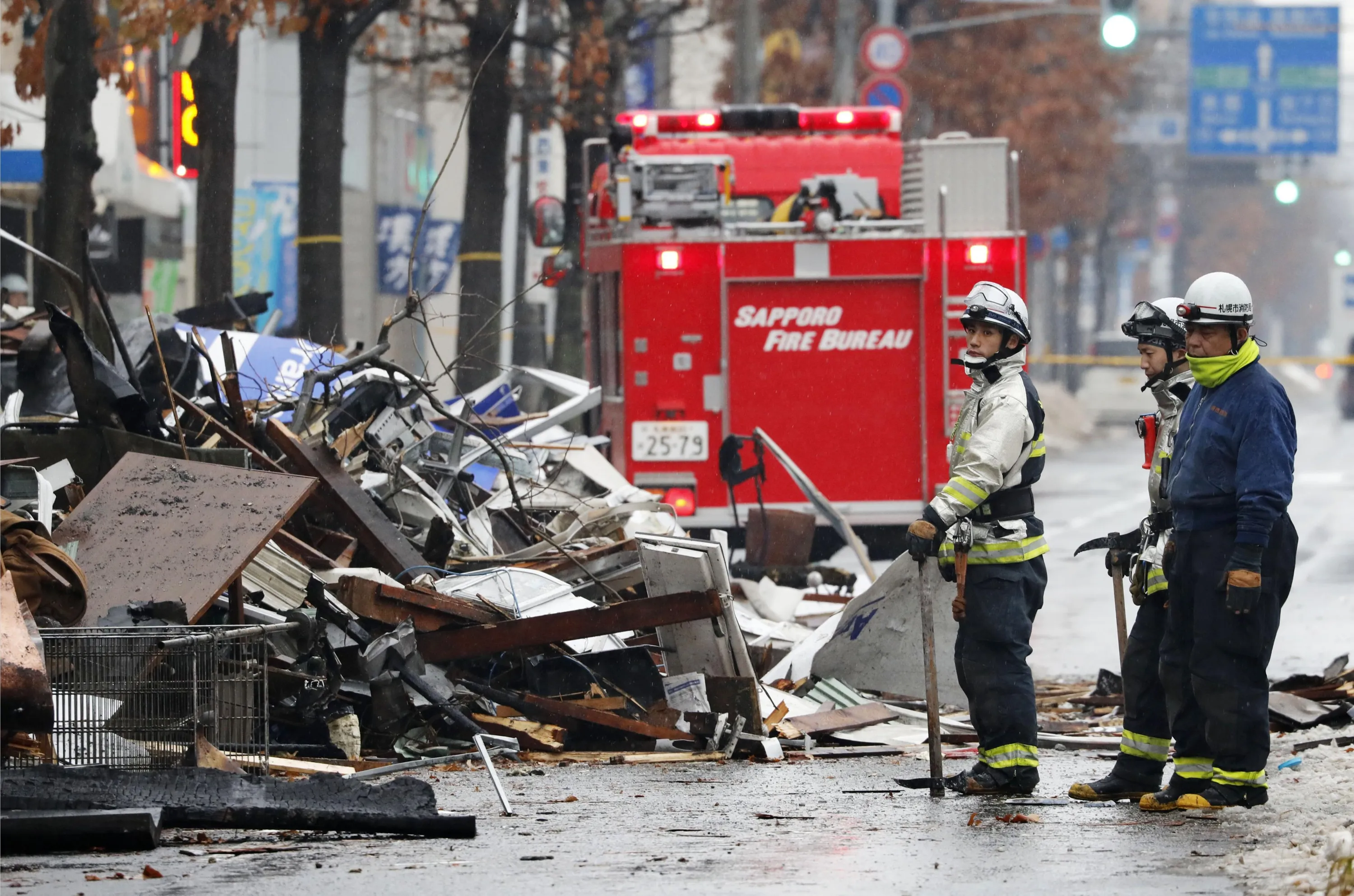 Firefighters work at the scene of an explosion in Sapporo, Japan, Monday, December 17, 2018. Dozens of people were injured in the explosion Sunday night at a Japanese restaurant in northern Japan, police said. The explosion occurred in Sapporo, the capital city of Japan's northern main island of Hokkaido, and caused nearby apartment buildings and houses to shake. ( Photo by Masanori Takei/Kyodo News via AP Photo)