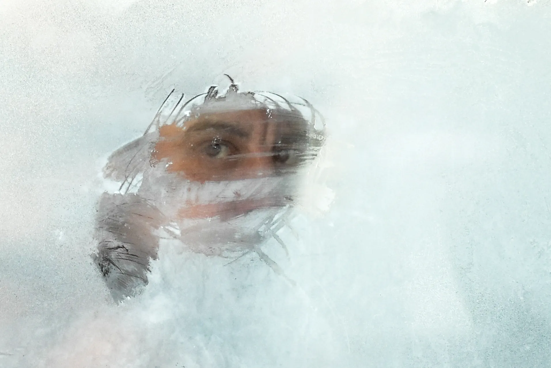 A passenger on a bus as frost hits Novosibirsk, Russia the mercury dropping as low as –31°C on December 24, 2018. (Photo by Kirill Kukhmar/TASS)