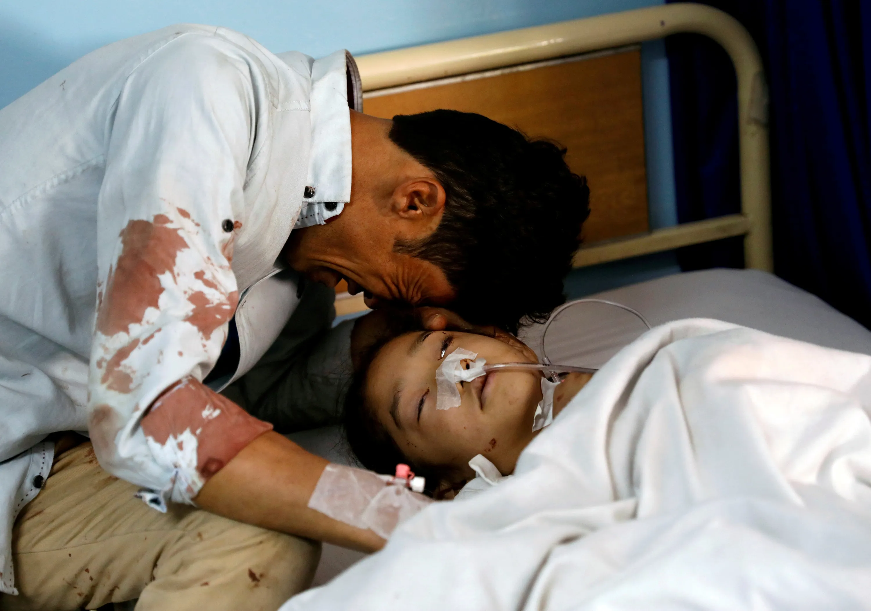 A man cries beside an injured girl at a hospital after a suicide attack in Kabul, Afghanistan, April 22, 2018. (Photo by Mohammad Ismail/Reuters)
