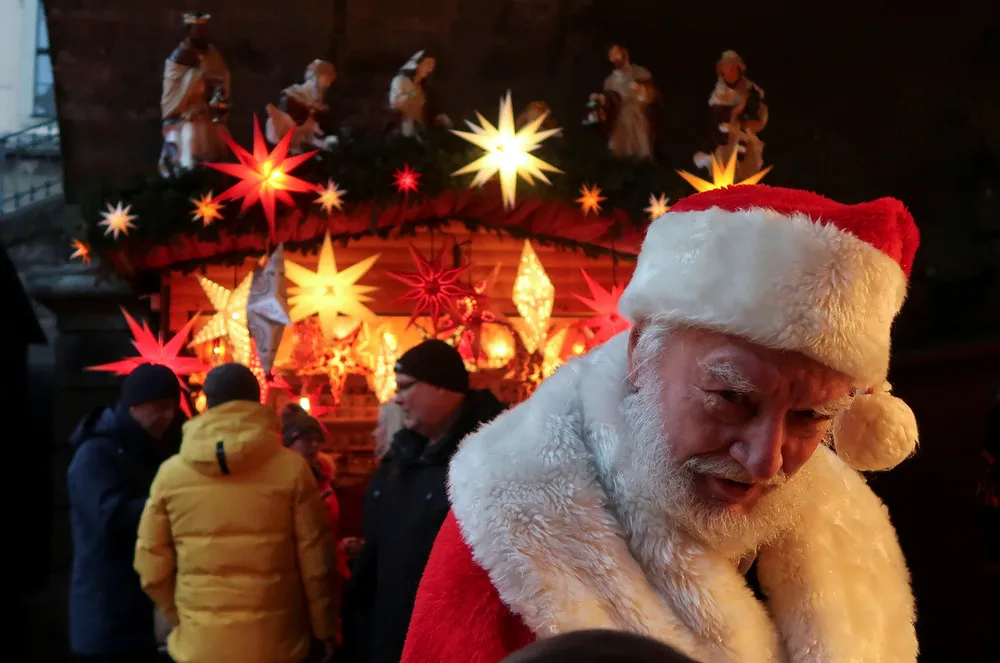 A man dressed as Santa Claus is pictured at the Christmas market near the Frauenkirche (Church of Our Lady) in Dresden, Germany, December 9, 2018. (Photo by Fabrizio Bensch/Reuters)