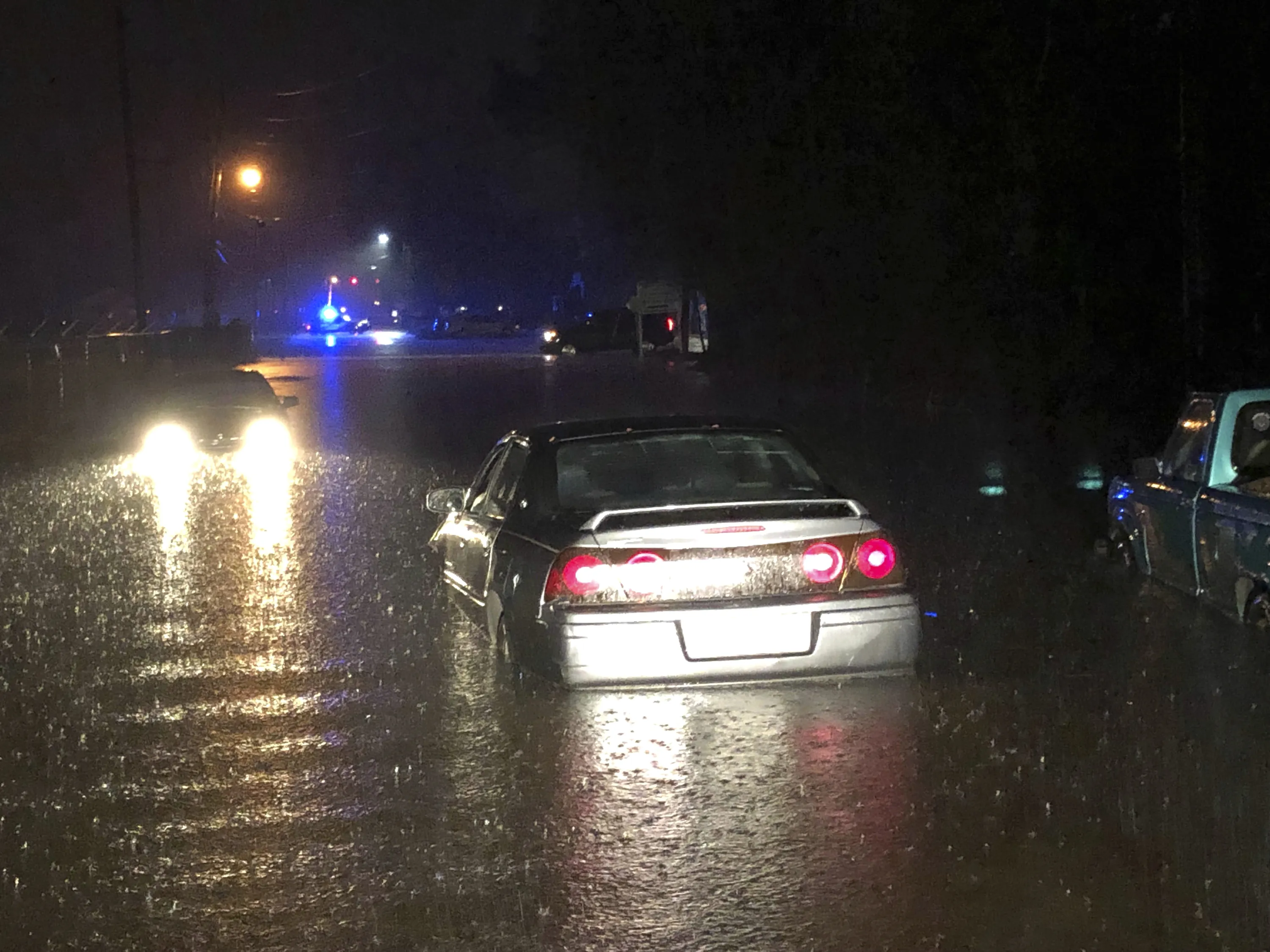 In this photo provided by the Hattiesburg Police Department, released drivers attempt to drive through flash flood waters on Providence Street in Hattiesburg, Miss., Thursday, December 27, 2018. A storm system dumped up to 12 inches of rain in Louisiana and Mississippi, Thursday afternoon through early Friday morning. (Photo by Ryan Moore/Hattiesburg Police Department via AP Photo)