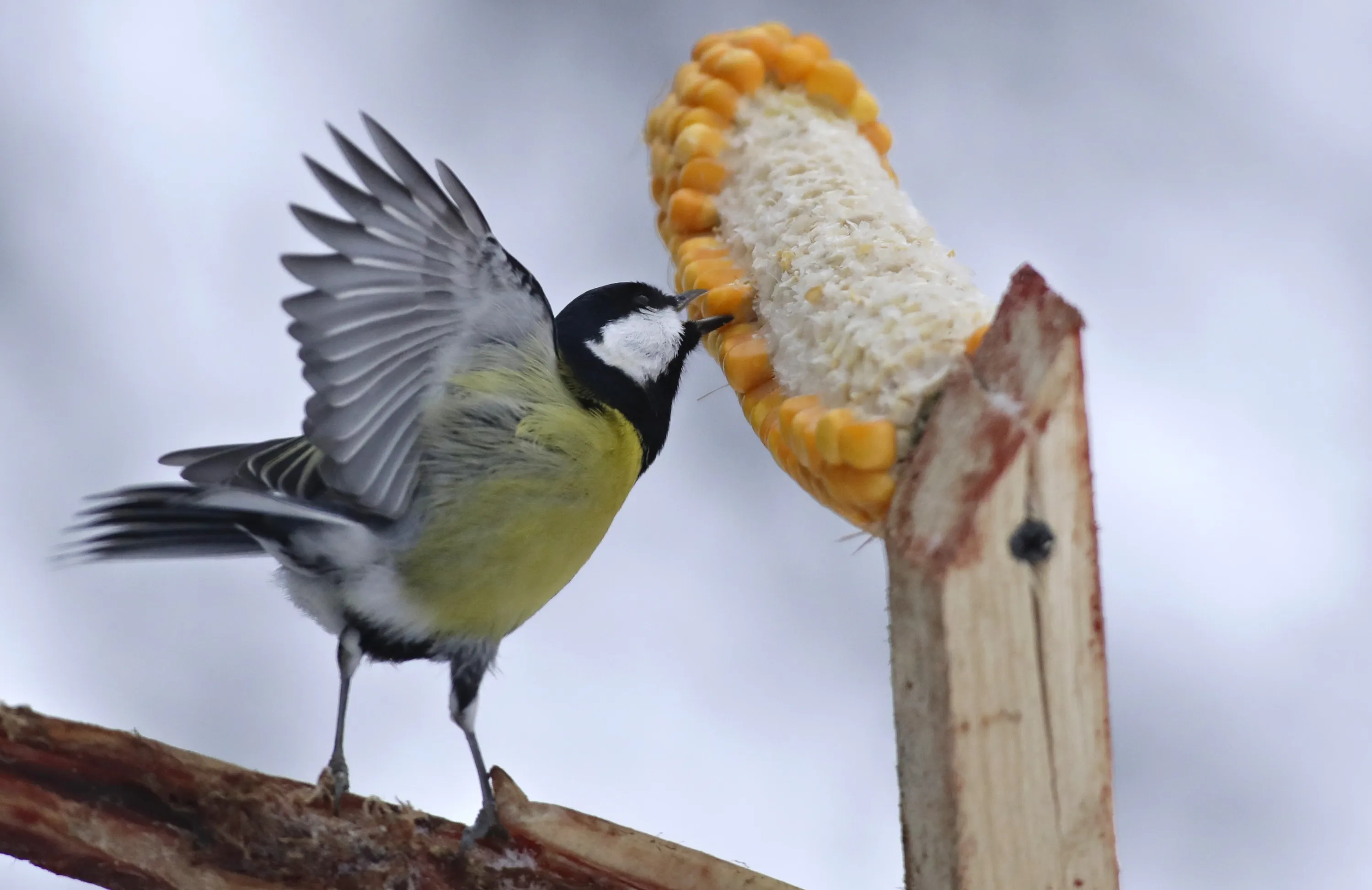 A bird picks kernels on a bird feeder on tree brach in the village of Khatenchitsy, 65 kilometers (40 miles) northwest of Minsk, Belarus, Monday, December 24, 2018. (Photo by Sergei Grits/AP Photo)