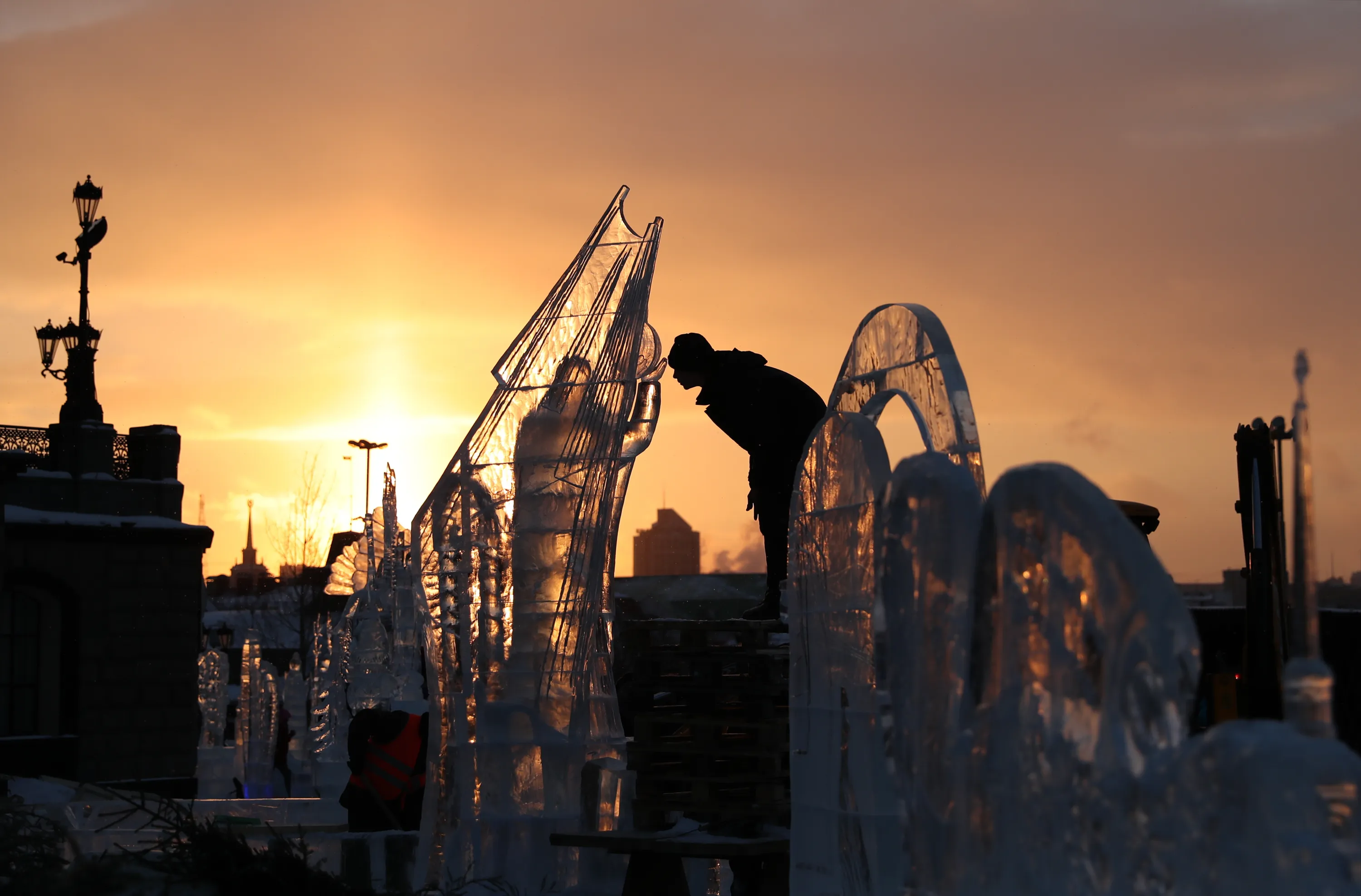 Ice sculptures carved as part of the 2019 Star of Bethlehem ice sculpture festival in Yekaterinburg, Russia on January 6, 2019. (Photo by Donat Sorokin/TASS)