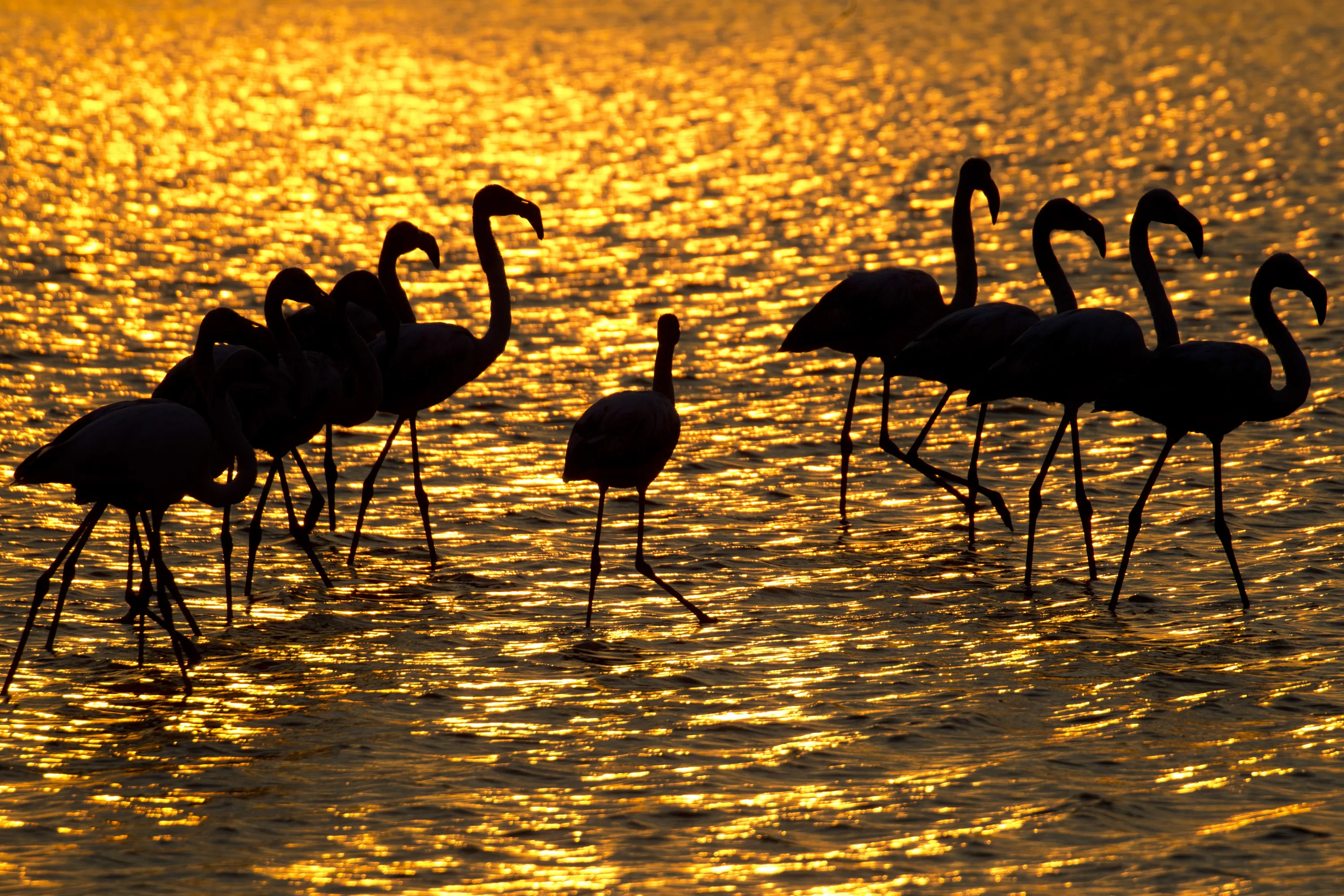 Flamingos search for food in a pond near Gan Shmuel, Israel, Thursday, November 8, 2018. Israel is a popular stopping-point on the migration routes for more than 400 species of birds on the way to Africa and back to Europe during the year. (Photo by Ariel Schalit/AP Photo)