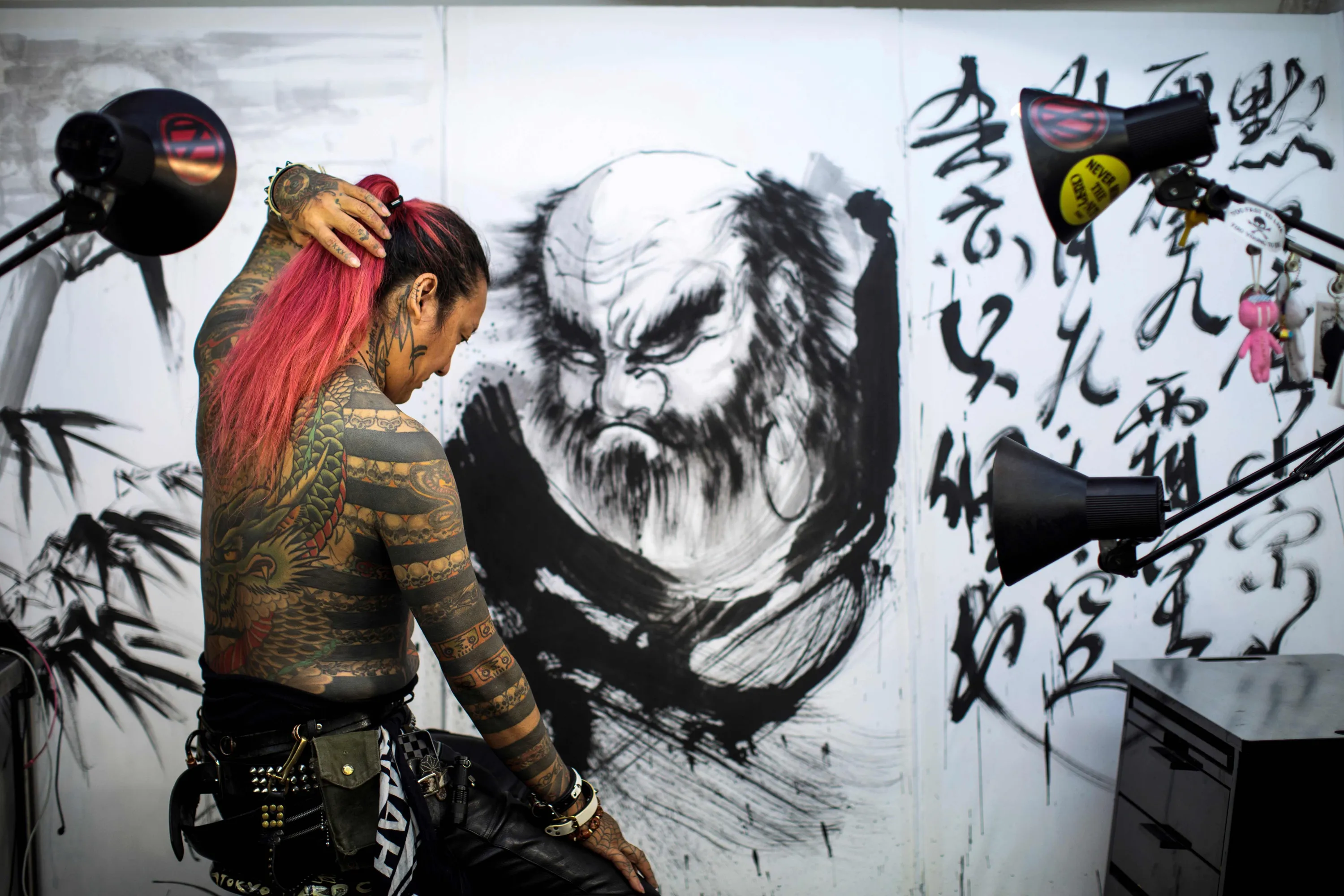 In this picture taken on November 15, 2017, Japanese tattoo artist Noriyuki Katsuta, a member of “Save Tattooing in Japan”, displays his tattoos as he poses for a photo at his studio in Tokyo. Tattoos still provoke deep-rooted suspicion in Japan as the country prepares to host the 2020 Tokyo Olympics. People with body ink are refused entry to public swimming pools, bathing spots, beaches and often gyms, while visible body art can be harmful to job prospects. (Photo by Behrouz Mehri/AFP Photo)