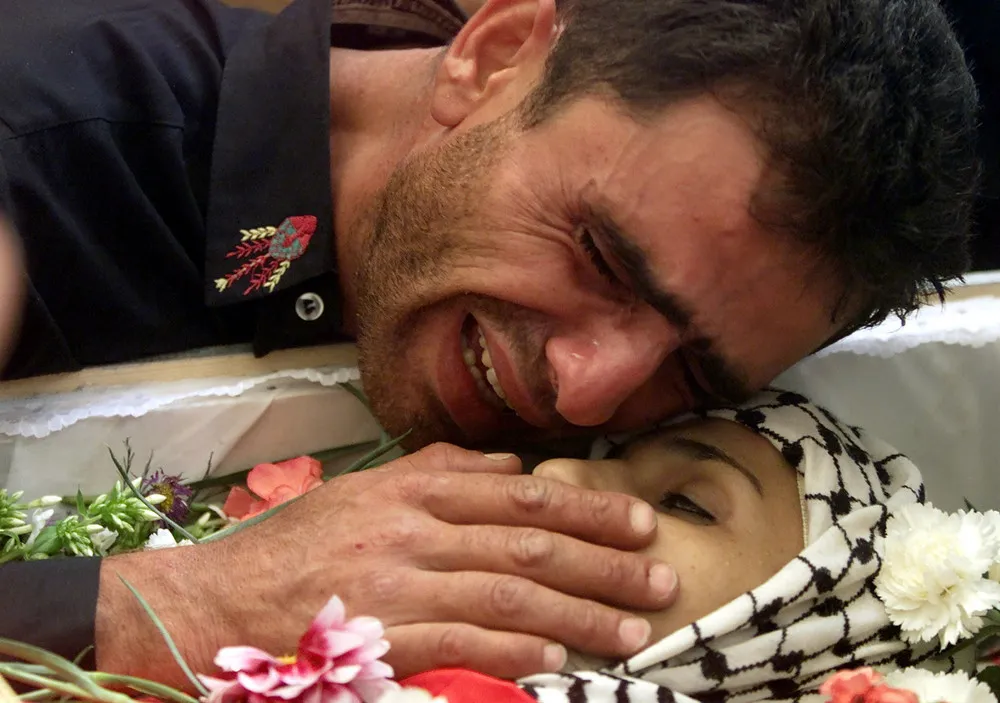A Palestinian Christian cries over the body of his wife killed in the crossfire between Palestinians and Israeli troops in the West bank town of Bethlehem, October 2001. (Photo by Desmond Boylan/Reuters)
