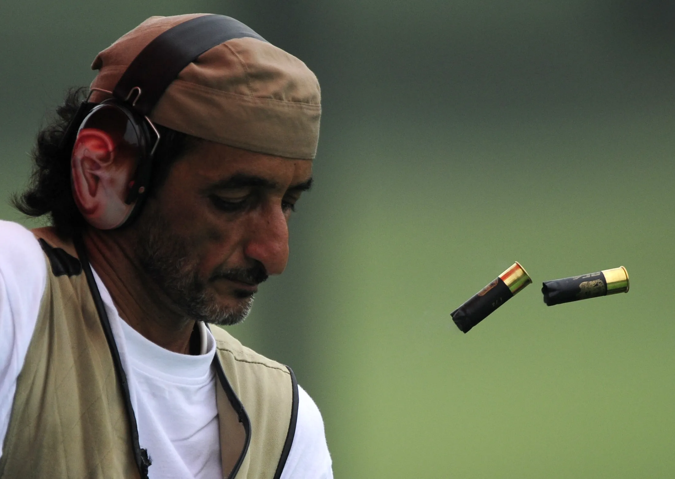 Ahmed Almaktoum of the UAE unloads his shotgun during the qualifying round of the men's trap competition of the shooting event at the Beijing 2008 Olympic Games. August 2008. (Photo by Desmond Boylan/Reuters)