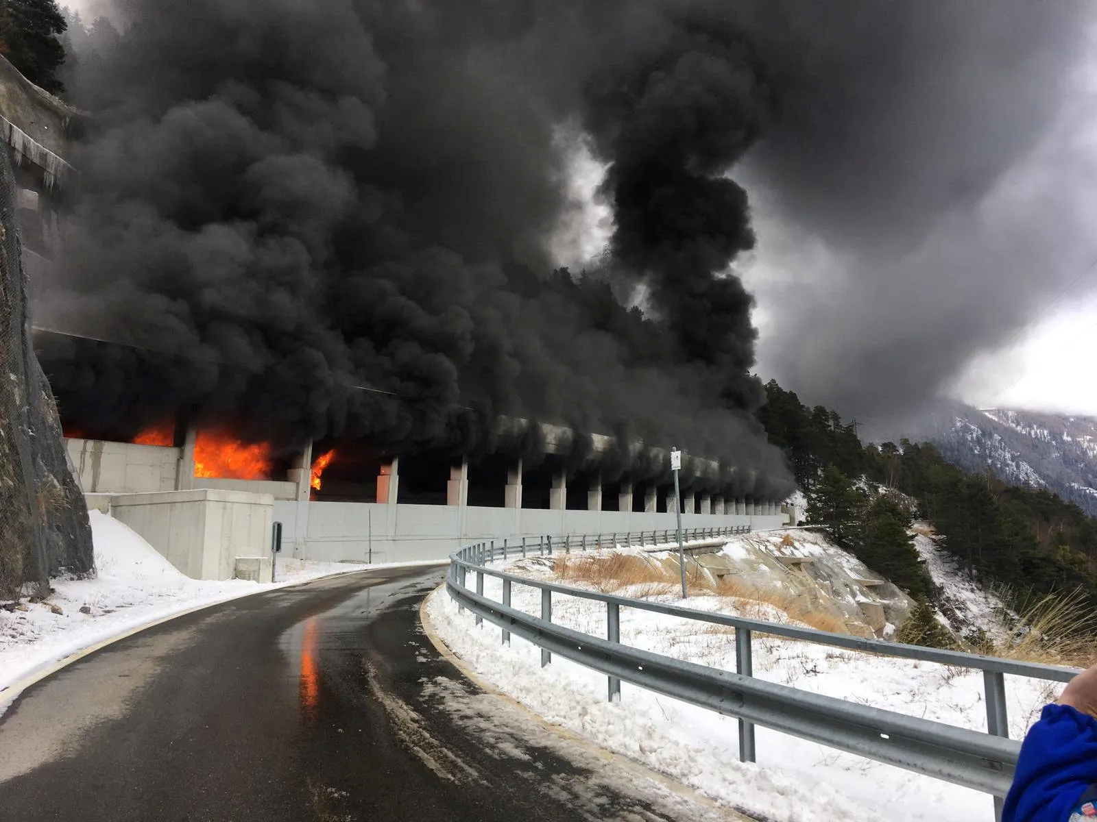 Fire and smoke are seen after a bus burnt-out in the Schallberg tunnel on the Simplon mountain pass road near Ried-Brig, Switzerland January 12, 2019. (Photo by Canton de Valais Cantonal Police/Handout via Reuters)