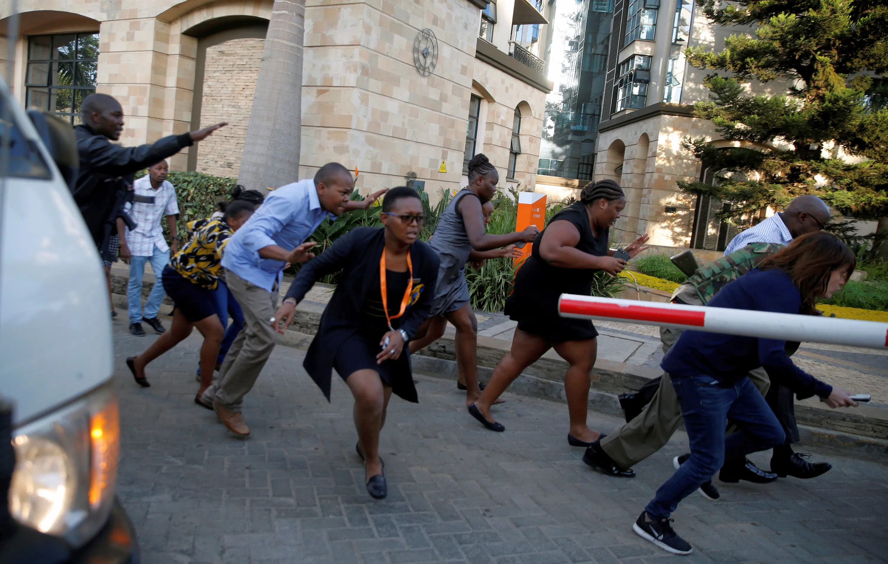 People run as they are evacuated at the scene where explosions and gunshots were heard at the Dusit hotel compound, in Nairobi, Kenya on January 15, 2019. (Photo by Thomas Mukoya/Reuters)