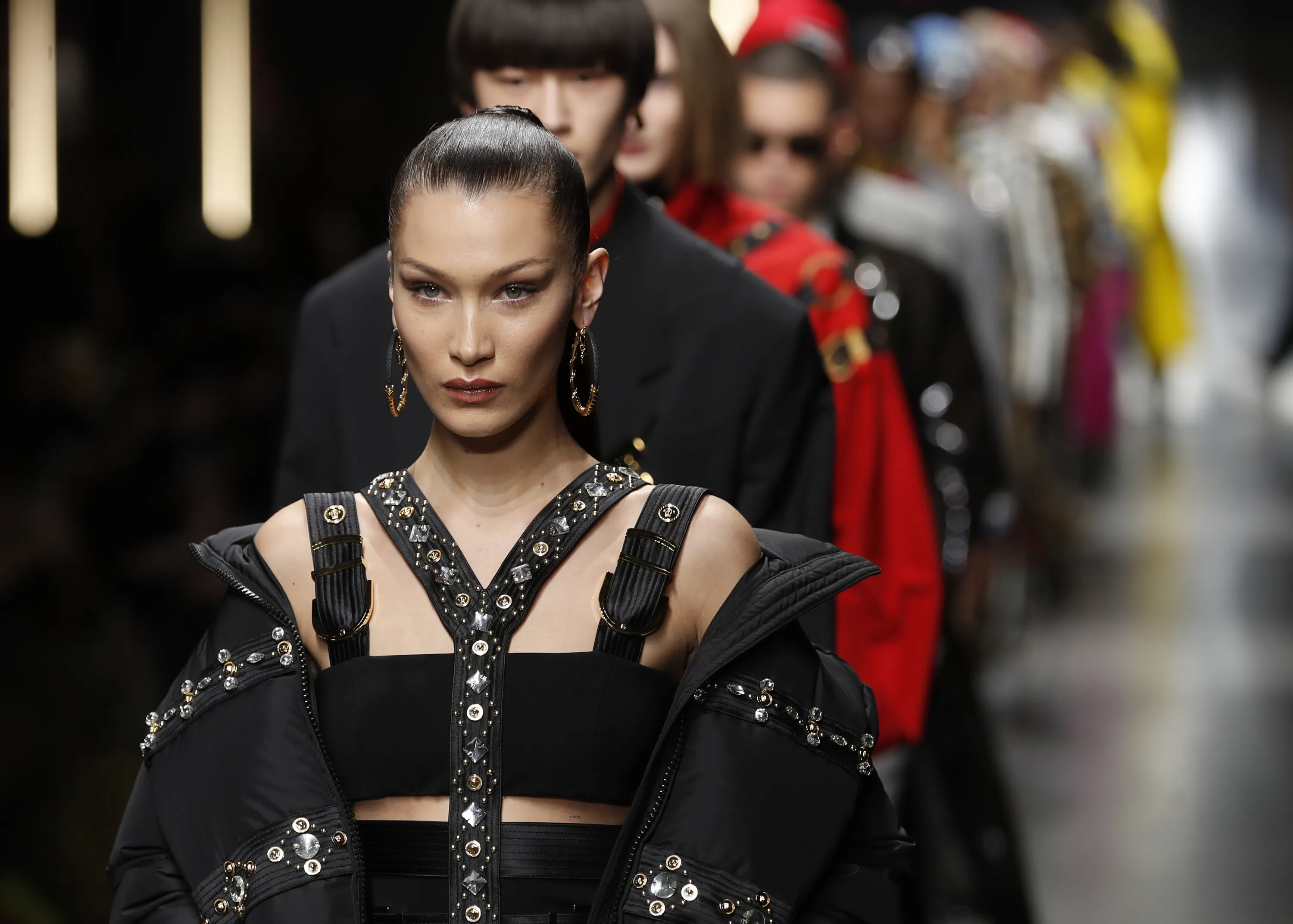 Supermodel Bella Hadid wears a creation as part of the Versace men's Fall-Winter 2019-20 collection, that was presented in Milan, Italy, Saturday, January 12, 2019. (Photo by Antonio Calanni/AP Photo)