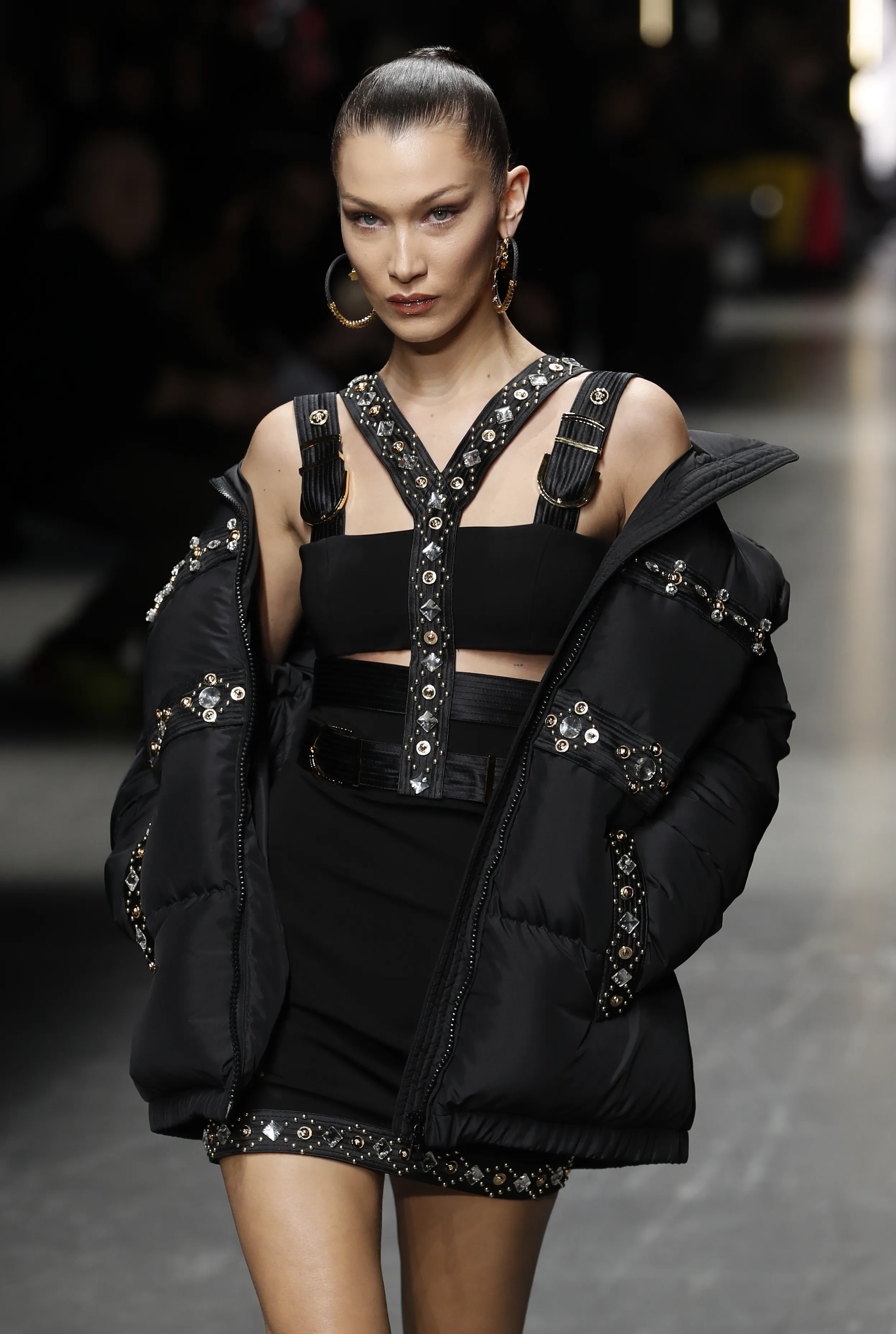Supermodel Bella Hadid wears a creation as part of the Versace men's Fall-Winter 2019-20 collection, that was presented in Milan, Italy, Saturday, January 12, 2019. (Photo by Antonio Calanni/AP Photo)