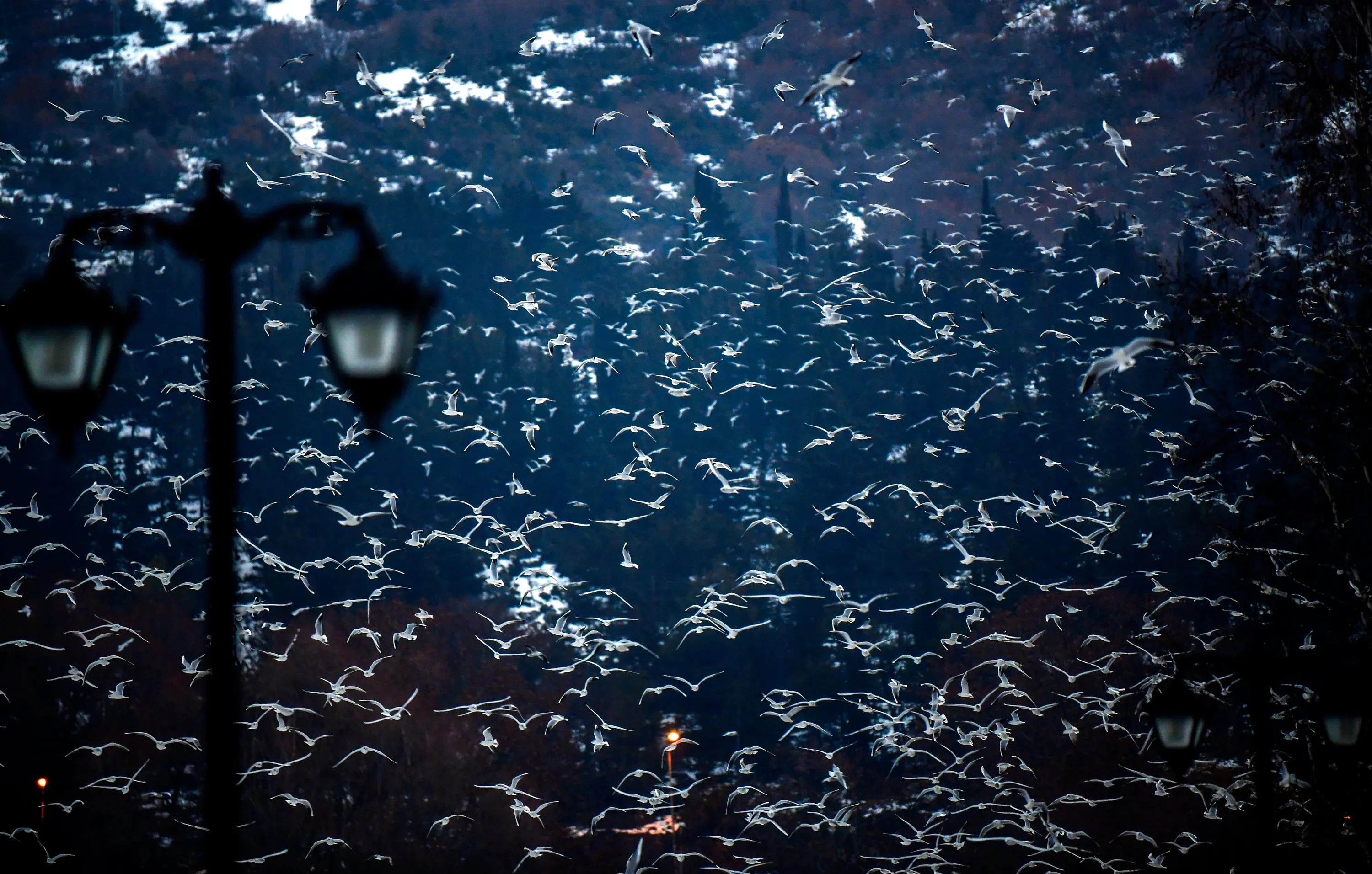 Thousands of birds gather on the shores of Lake Ohrid in search of food in Ohrid, The Former Yugoslav Republic of Macedonia, 21 January 2019. Low winter temperatures force fish into the shallow, warm canals, and lacking oxygen pushes them to the surface, inviting many birds. (Photo by Georgi Licovski/EPA/EFE)