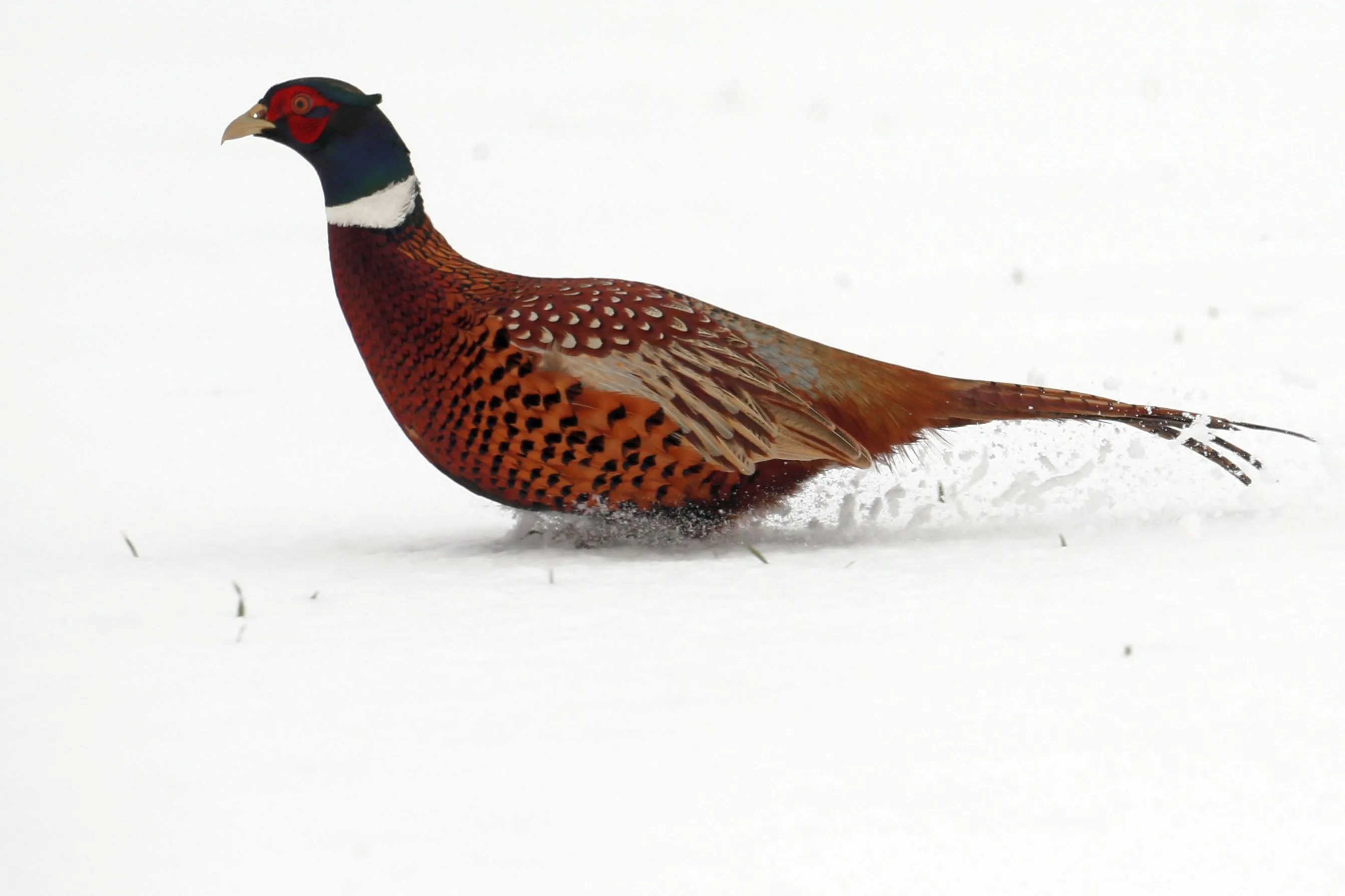A pheasant runs in a snow covered field in Niergnies, as winter weather hits France, January 23, 2019. (Photo by Pascal Rossignol/Reuters)