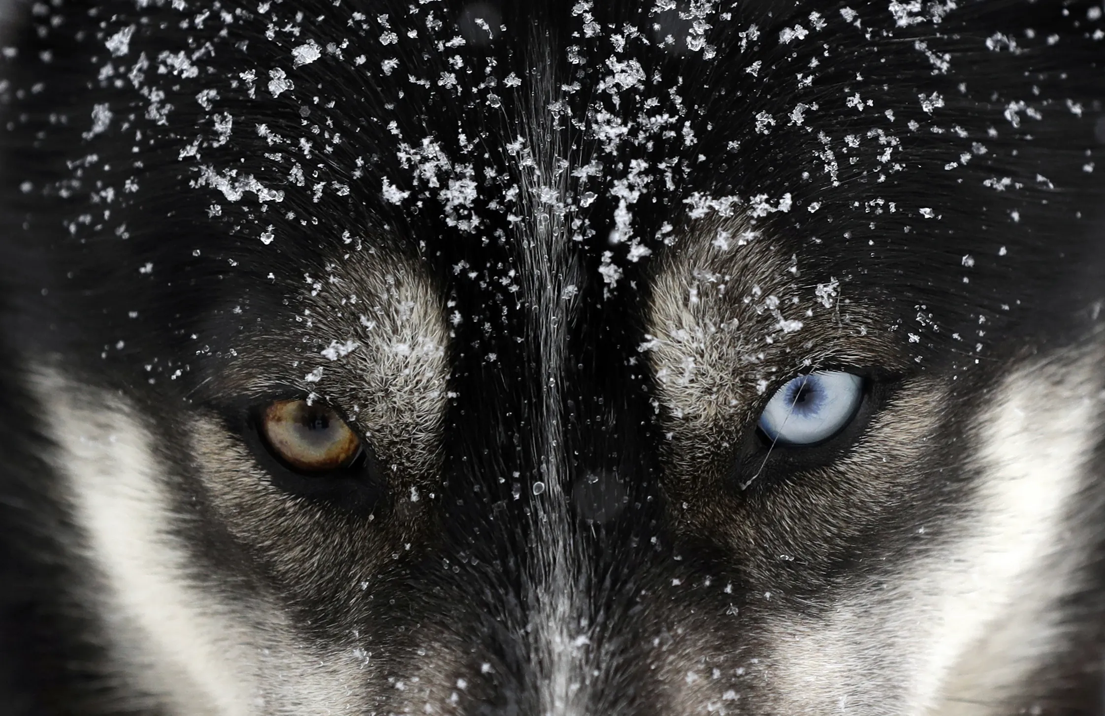 A dog waits for the start of the Sedivackuv Long dog sled race near the village of Destne v Orlicky Horach, Czech Republic, Friday, January 25, 2019. (Photo by Petr David Josek/AP Photo)