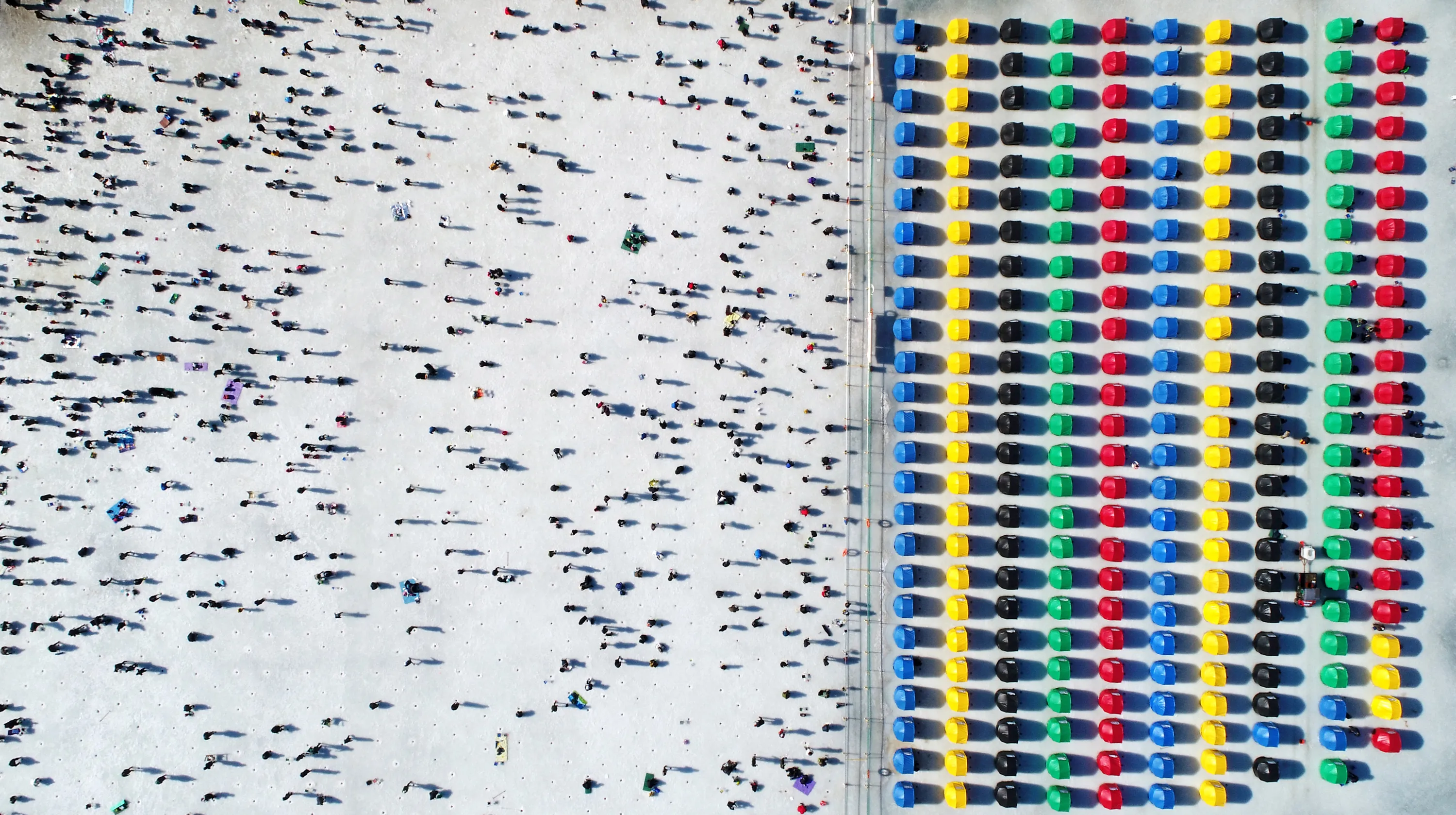 Picture taken with a drone shows festival visitors enjoying fishing on a frozen river during the annual Pyeongchang Trout Festival, Pyeongchang county, South Korea, 24 January 2019. (Photo by Jeon Heon-Kyun/EPA/EFE)