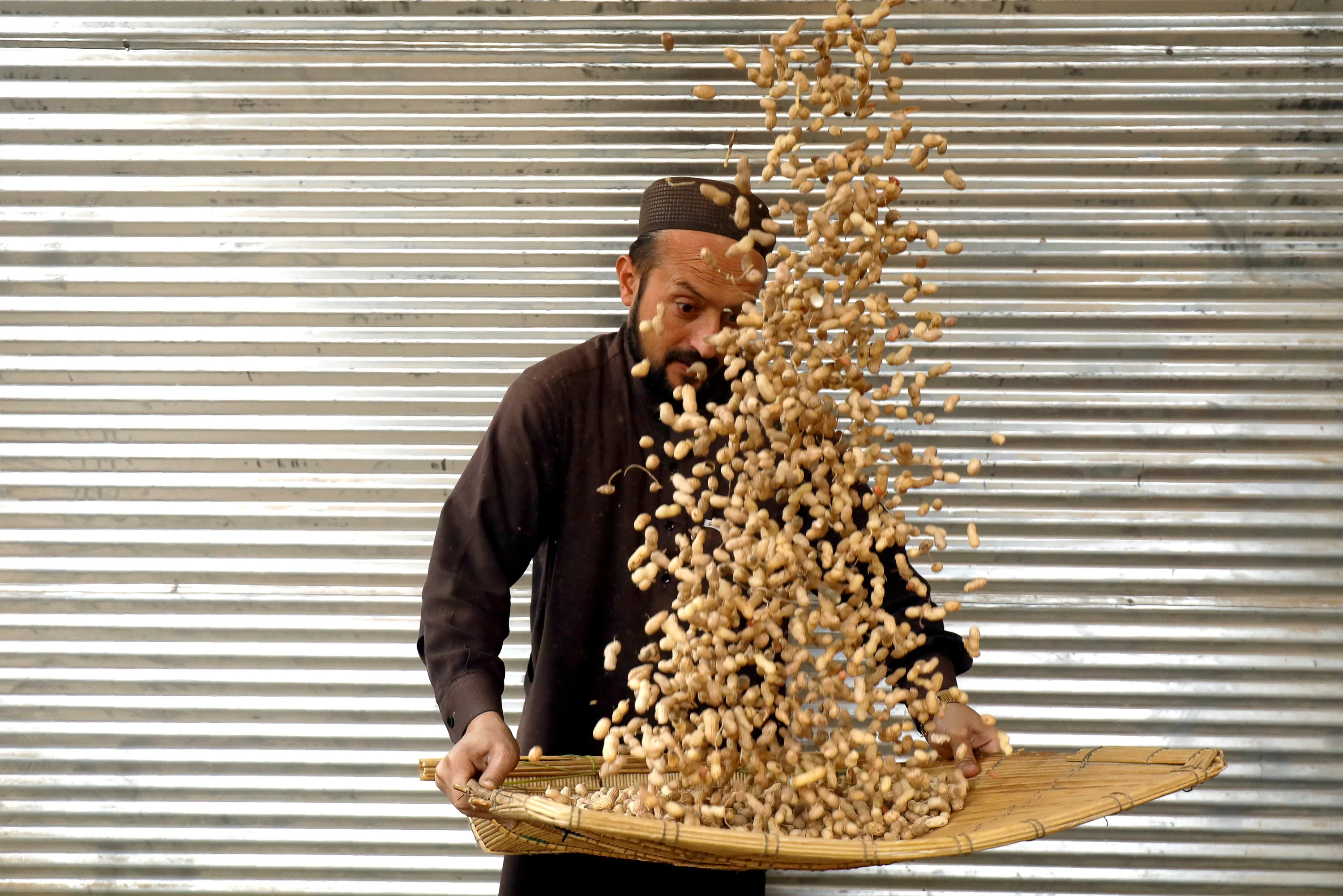 A man cleans peanuts for sale outside a shop in Peshawar, Pakistan January 7, 2019. (Photo by Fayaz Aziz/Reuters)