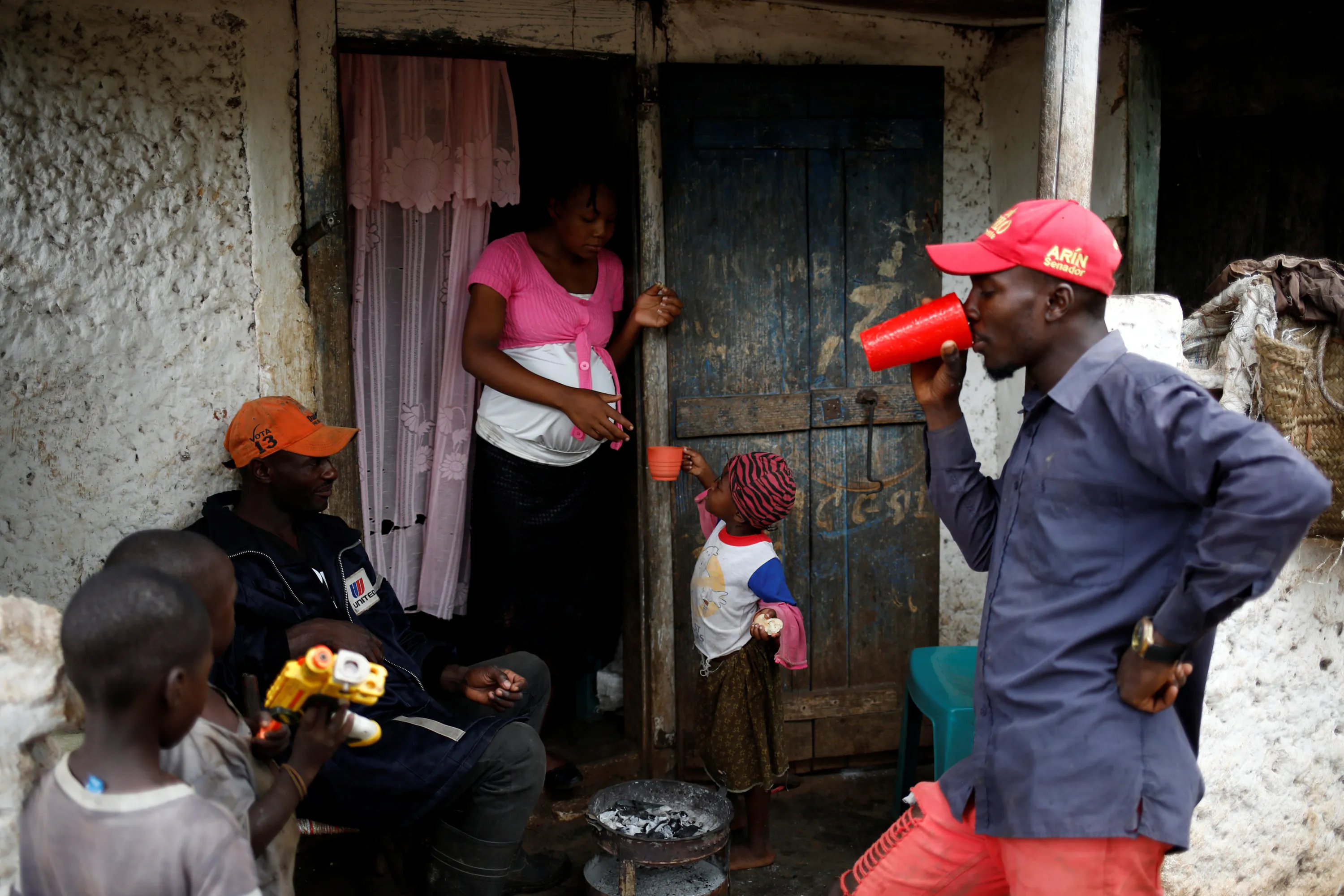 Brothers Manes (L) and Fresnels Exalus (R), and Naida Ogisten have a snack with relatives in the house of Manes and Naida in Boucan Ferdinand, Haiti, October 8, 2018. “These people (politicians) win... and they forget about us”, Fresnels said. “When there is drought, we have to go to fetch water from the Dominican (Republic). They don't even send a little bag here”, Manes said. (Photo by Andres Martinez Casares/Reuters)