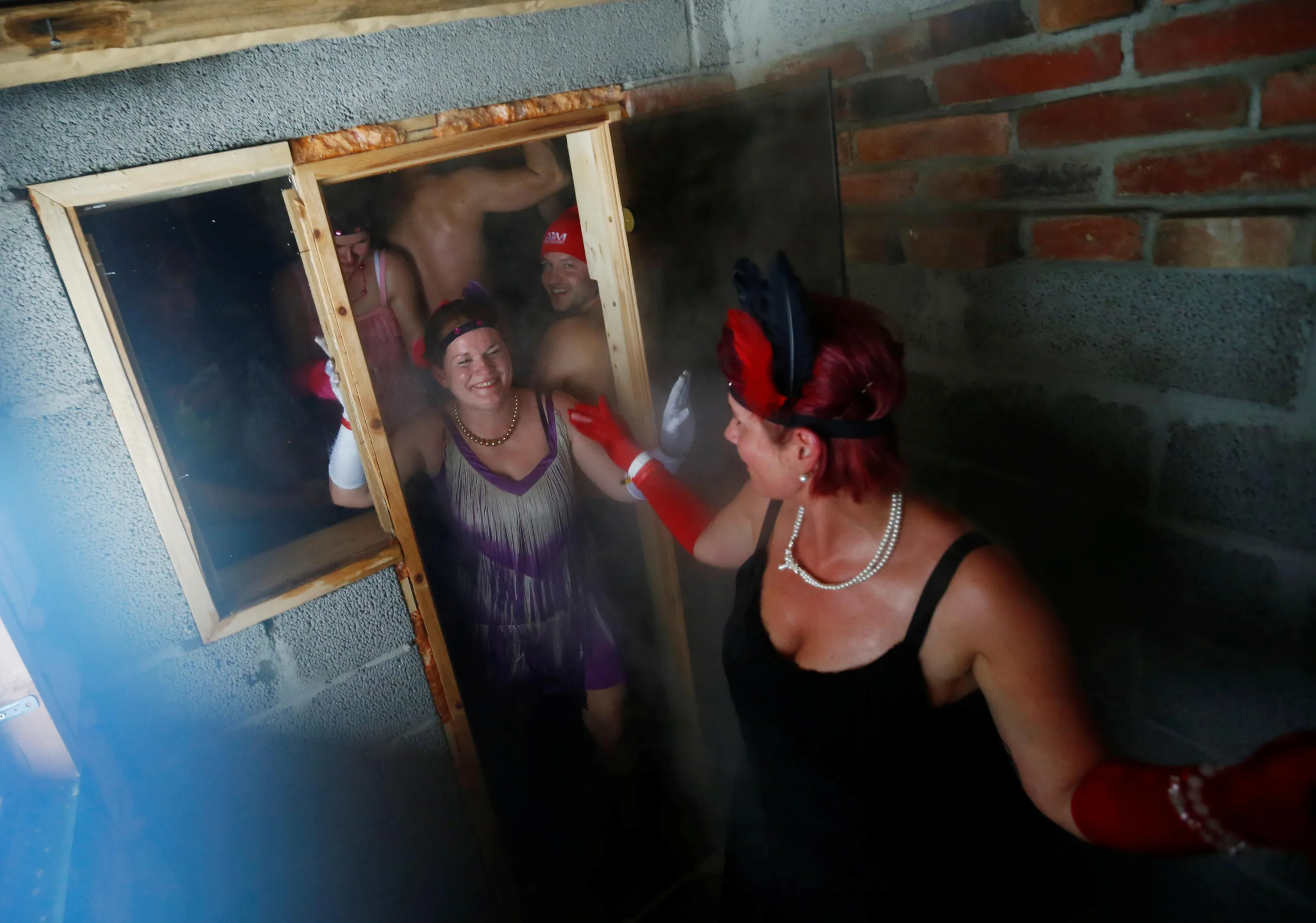 People leave sauna during the sauna marathon near Otepaa, Estonia on February 2, 2019. (Photo by Ints Kalnins/Reuters)