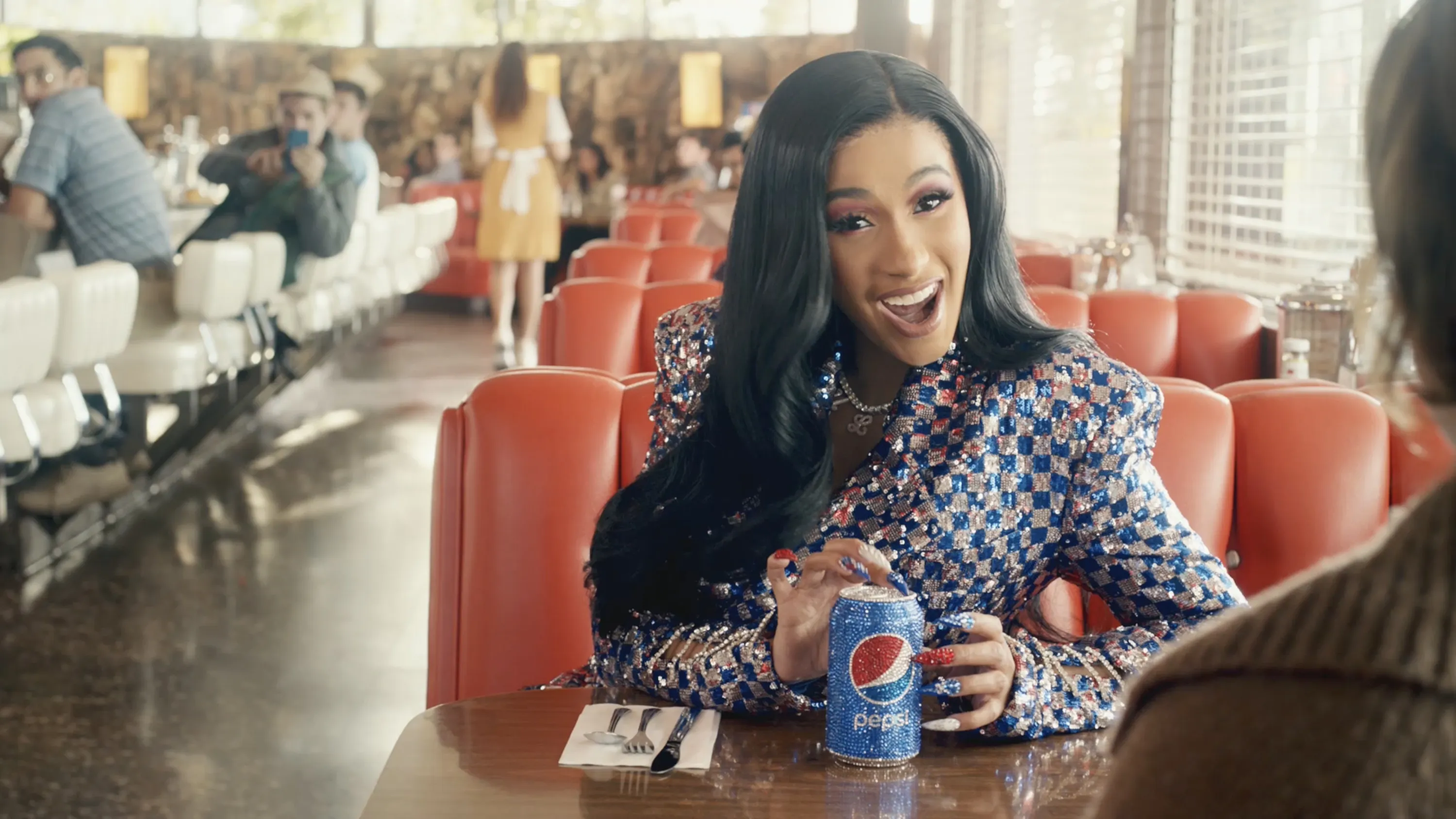 This screen grab from video provided by PepsiCo shows an image from the company's 2019 Super Bowl NFL football spot featuring Cardi B. Star power abounds in this year’s Super Bowl ads. (Photo by PepsiCo via AP Photo)