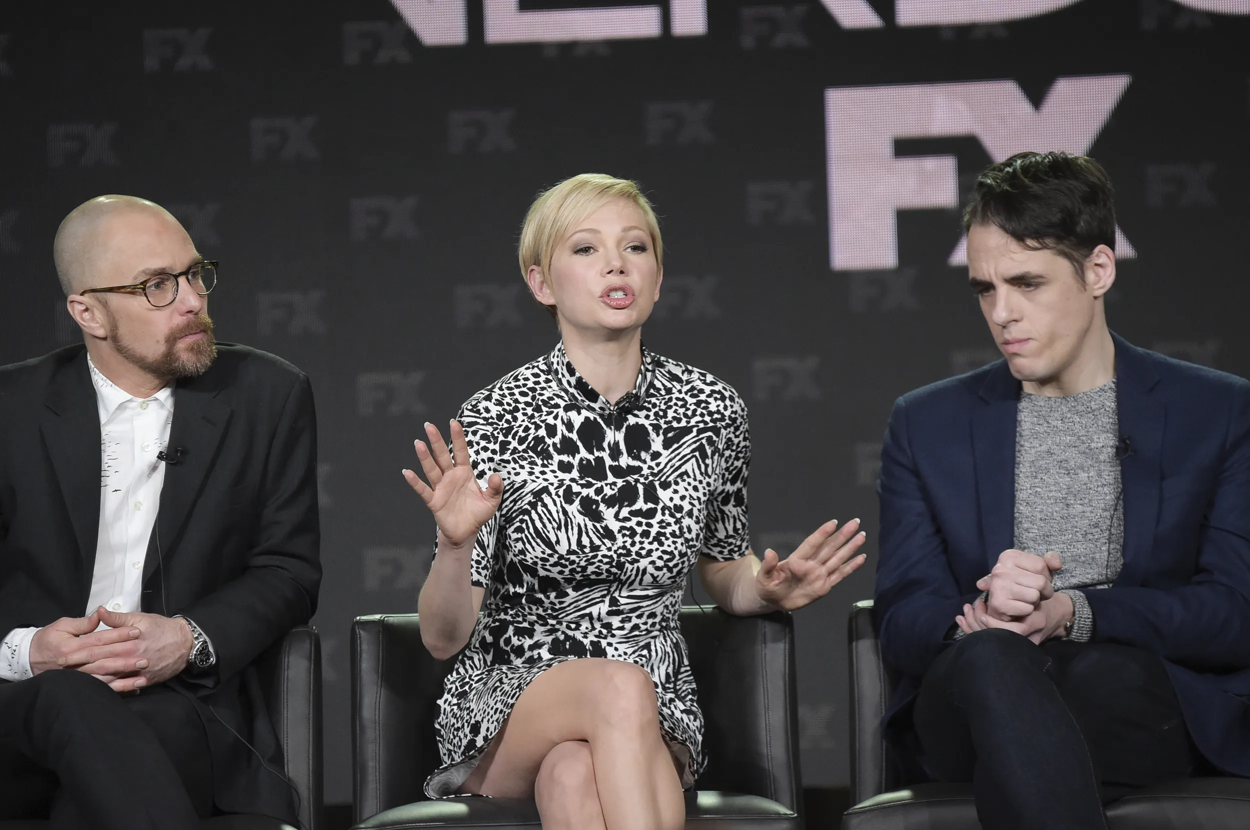 Sam Rockwell, from left, Michelle Williams and Steven Levenson participate in the “Fosse/Verdon” panel during FX TCA Winter Press Tour on Monday, February 4, 2019, in Pasadena, Calif. (Photo by Richard Shotwell/Invision/AP Photo)