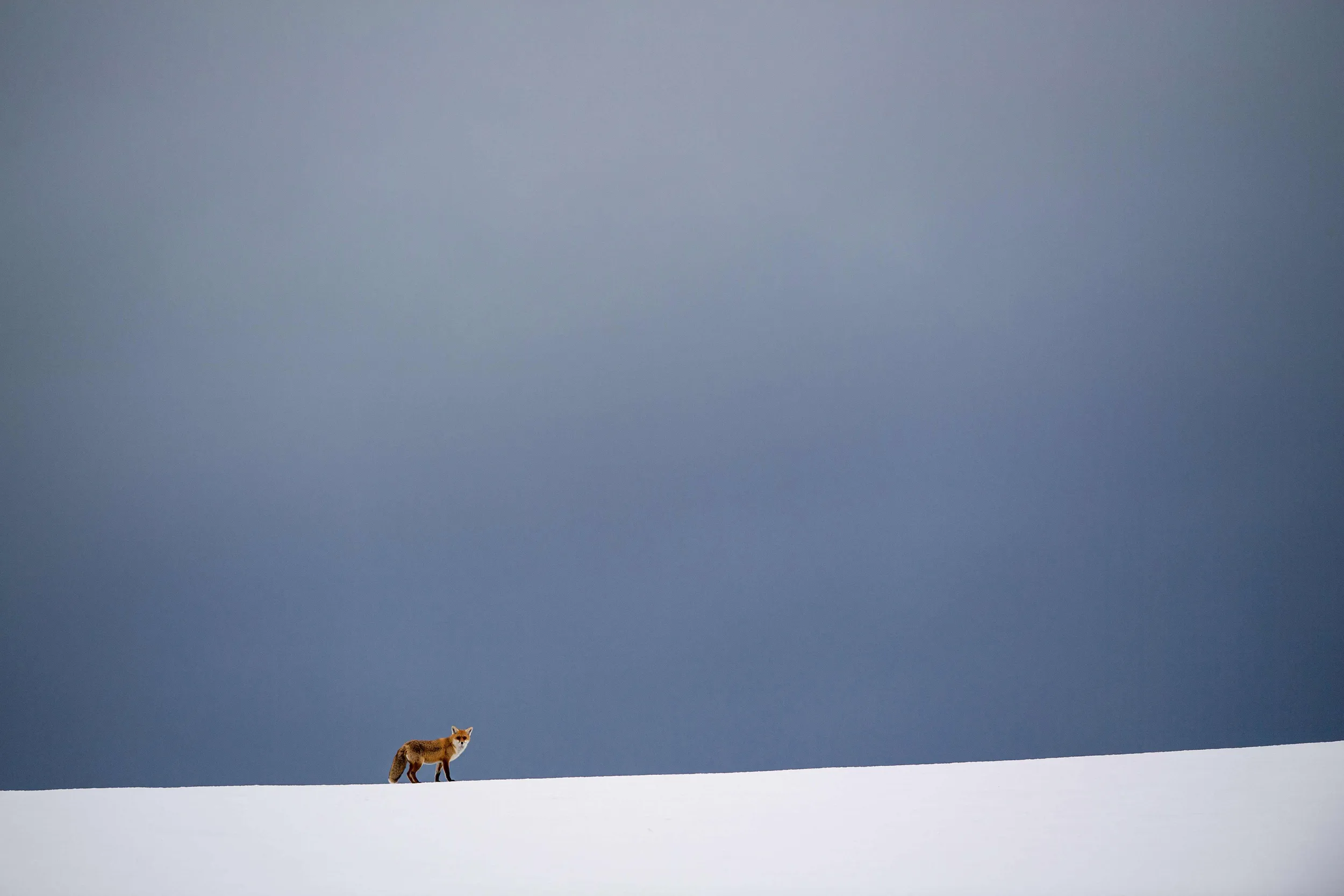 A fox is pictured on a snow-covered field in Erkenbollingen, southern Germany, on a cloudy February 11, 2019. (Photo by Lino Mirgeler/dpa/AFP Photo)