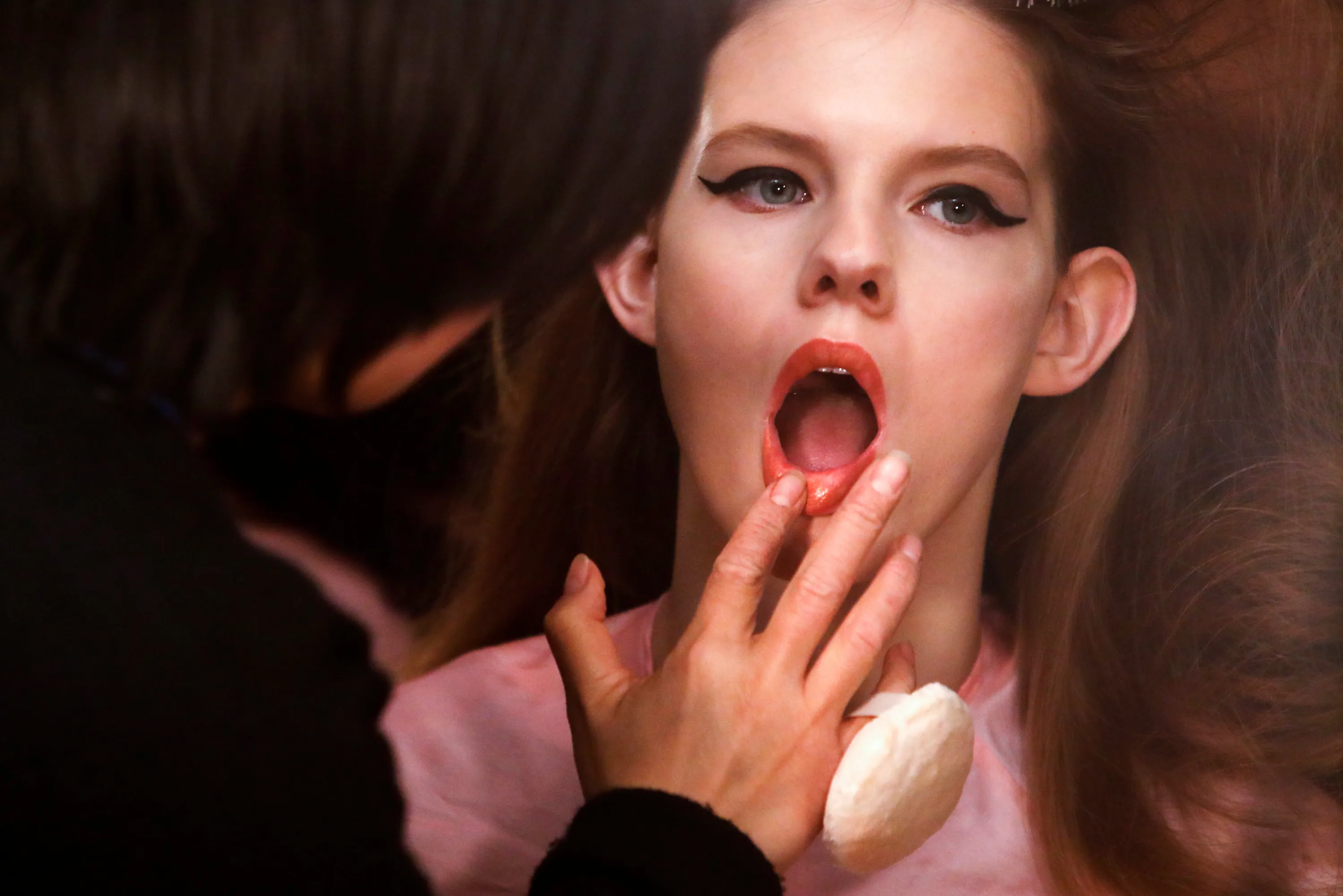 A model prepares backstage before the Philipp Plein A/W 19 Dinner Show during New York Fashion Week in New York City, U.S., February 11, 2019. (Photo by Andrew Kelly/Reuters)