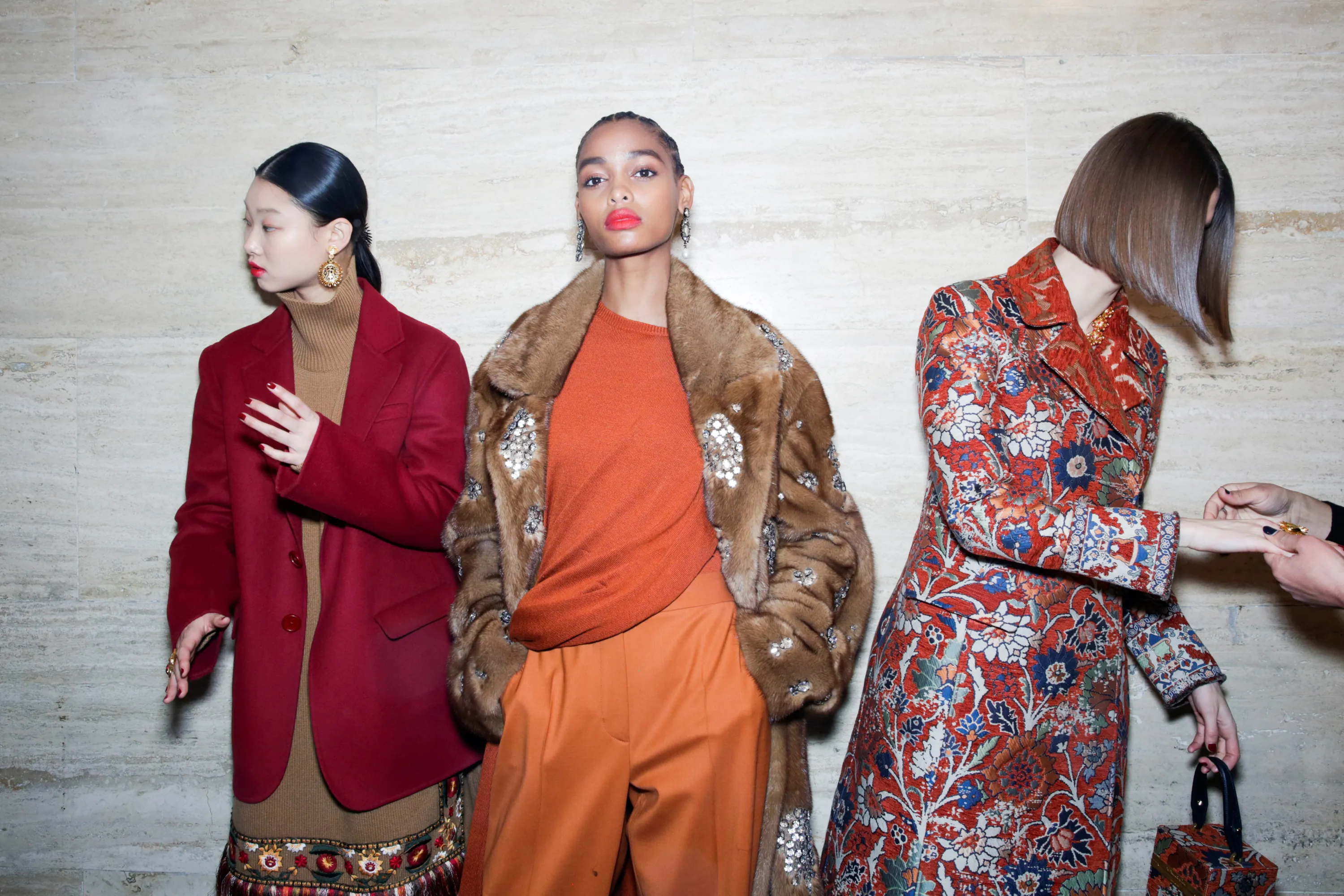 Models present creations from the Oscar de la Renta collection before the show during New York Fashion Week in New York, U.S., February 12, 2019. (Photo by Gaia Squarci/Reuters)