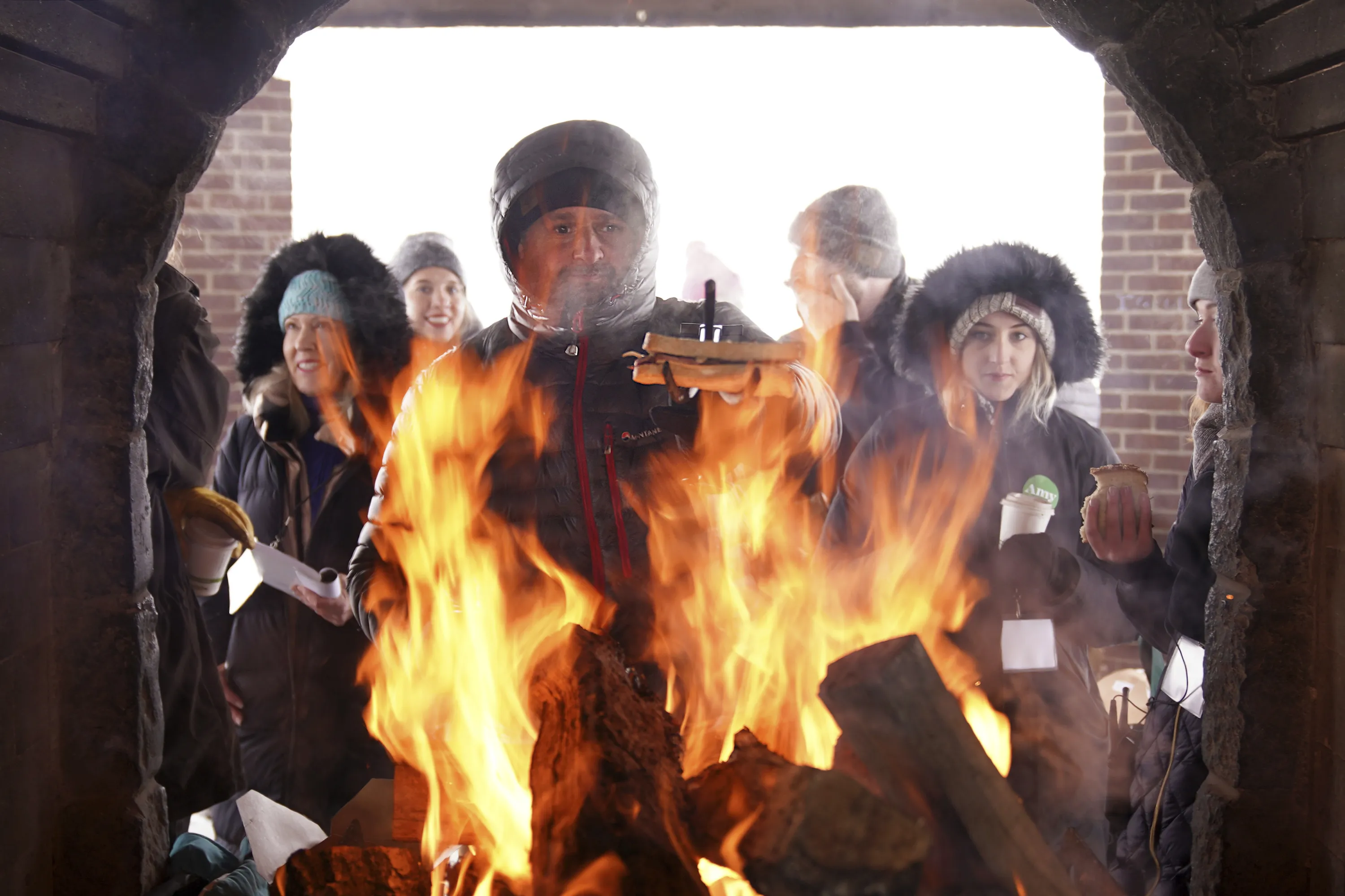 Volunteer Tim Schumann grills his lunch over an open flame in one of the warming areas Sunday, February 10, 2019, prior to Democratic Sen. Amy Klobuchar's announcement of her decision in the race for president at a rally in Minneapolis. (Photo by Anthony Souffle/Star Tribune via AP Photo)