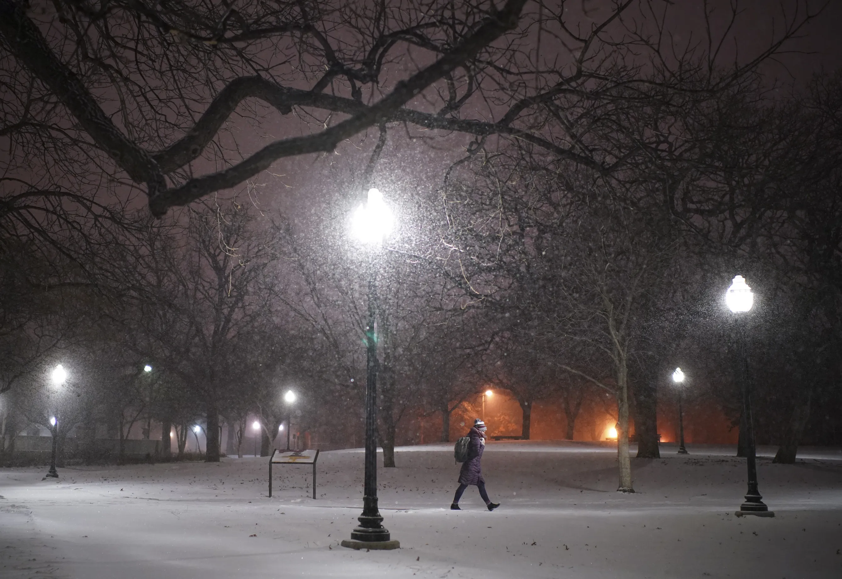 A woman walks across the snowy University of Minnesota campus near Dinkytown neighborhood in Minneapolis on Sunday, January 27, 2019. A winter storm pushing across the Upper Midwest is expected to dump more than a foot of snow in parts of Minnesota and Wisconsin. (Photo by Jeff Wheeler/Star Tribune via AP Photo)