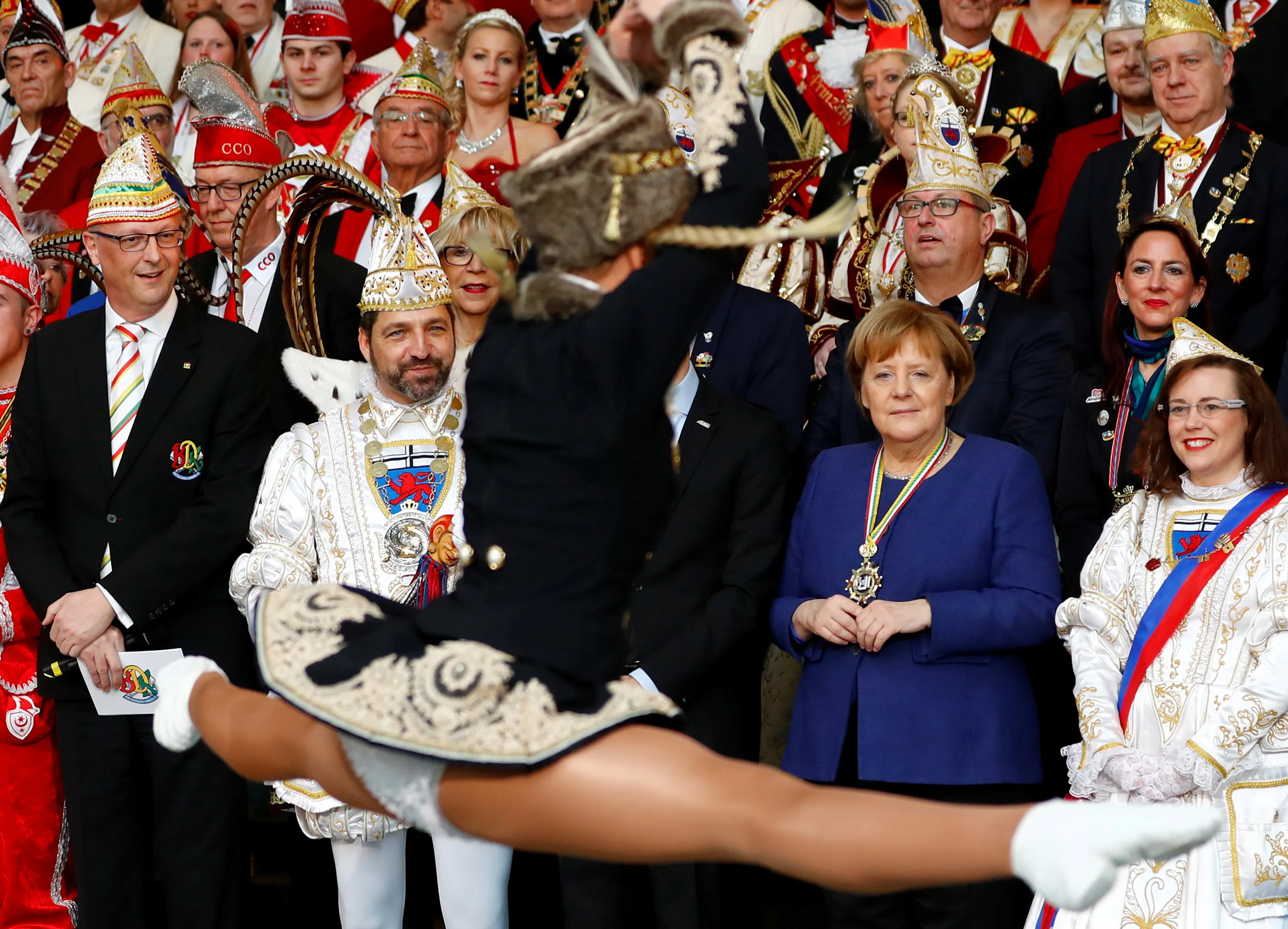 German Chancellor Angela Merkel attends a reception of German carnival societies at the Chancellery in Berlin, Germany on February 19, 2019. (Photo by Fabrizio Bensch/Reuters)