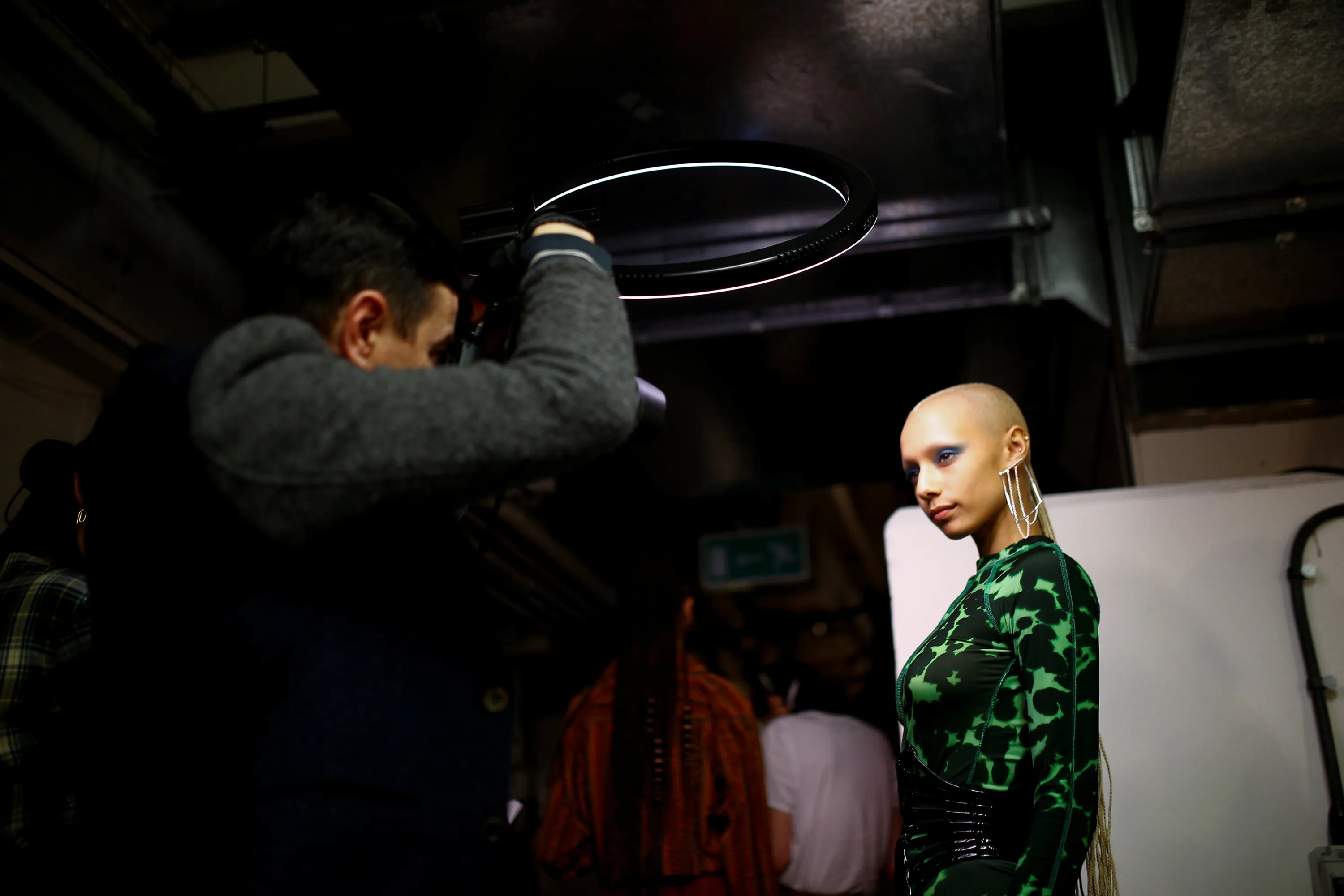 A model poses backstage of the House of Holland catwalk show during London Fashion Week Women's A/W19 in London, Britain February 16, 2019. (Photo by Henry Nicholls/Reuters)