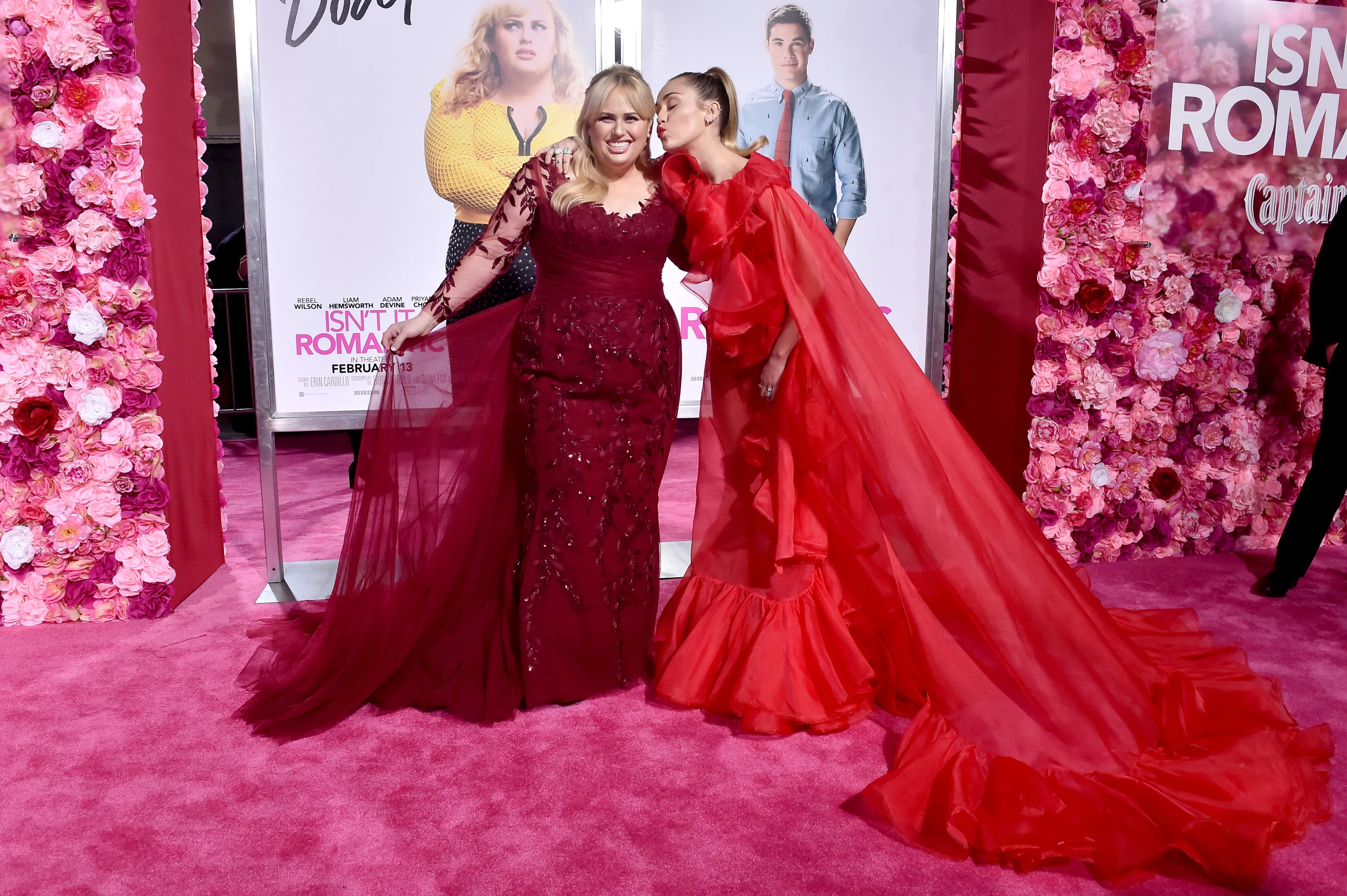 Rebel Wilson and Miley Cyrus attend the premiere of Warner Bros. Pictures' “Isn't It Romantic” at The Theatre at Ace Hotel on February 11, 2019 in Los Angeles, California. (Photo by Axelle/Bauer-Griffin/FilmMagic)