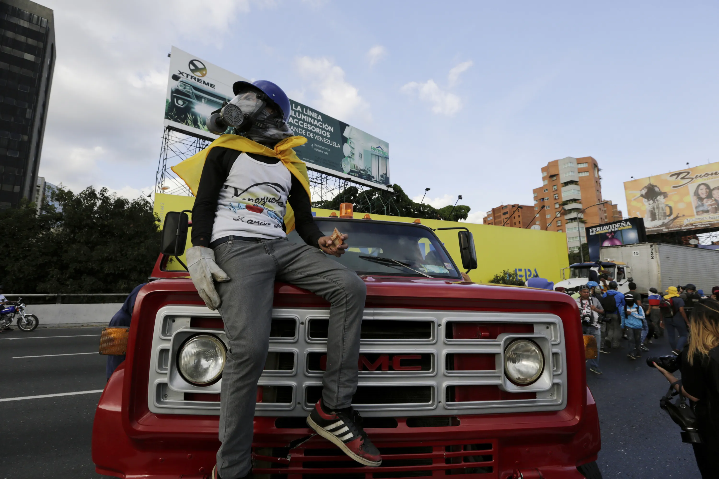 A demonstrator take control of a truck to block a highway after a demonstration demanding the resignation of President Nicolas Maduro, in Caracas, Venezuela, Saturday, February 2, 2019. Momentum is growing for Venezuela's opposition movement led by Guaido, who has called supporters back into the streets for nationwide protests Saturday, escalating pressure on Maduro to step down. (Photo by Fernando Llano/AP Photo)