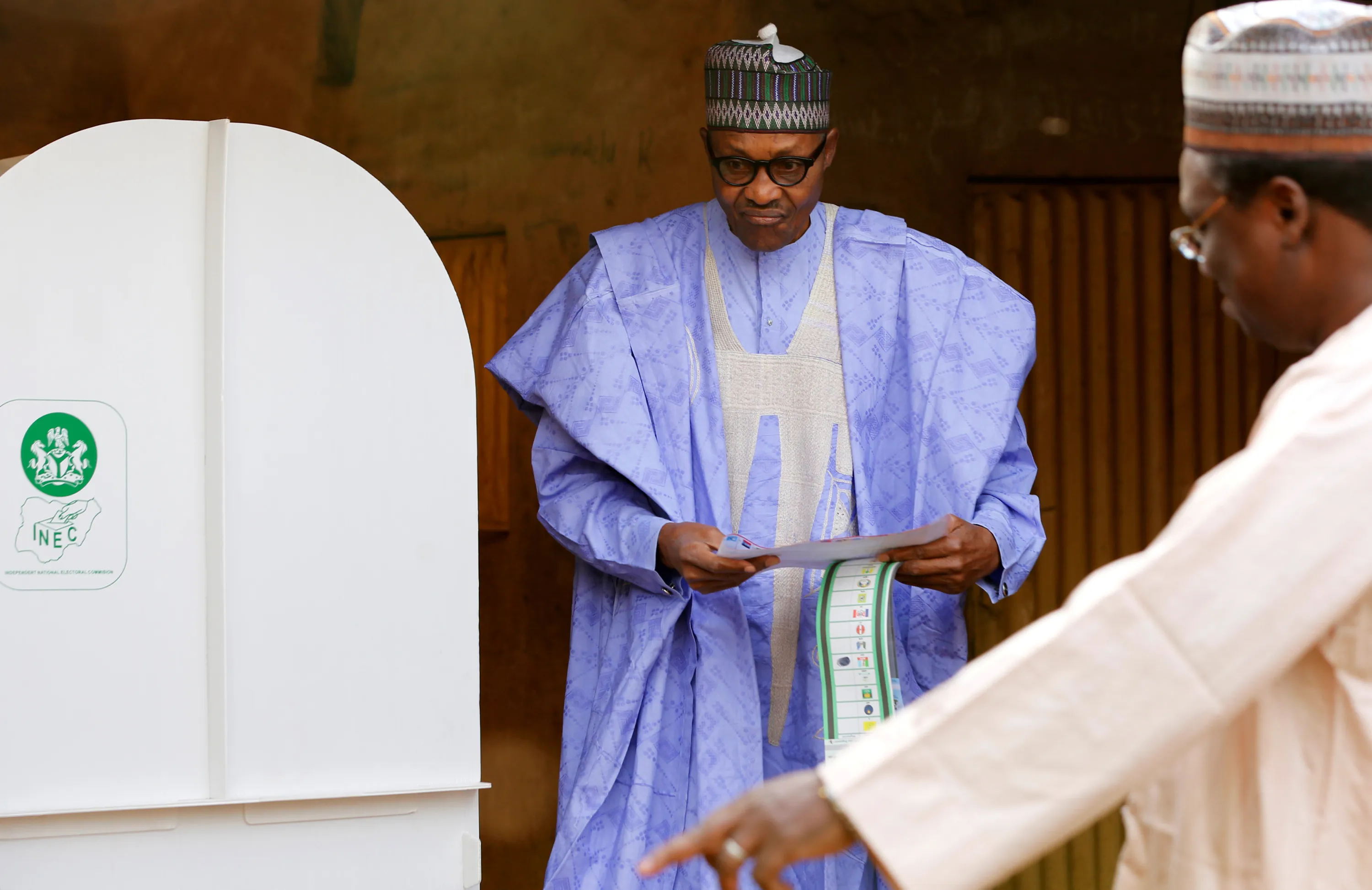 Nigerian President Muhammadu Buhari casts his vote in Nigeria's presidential election at a polling station in Daura, Katsina State, Nigeria, February 23, 2019. (Photo by Afolabi Sotunde/Reuters)