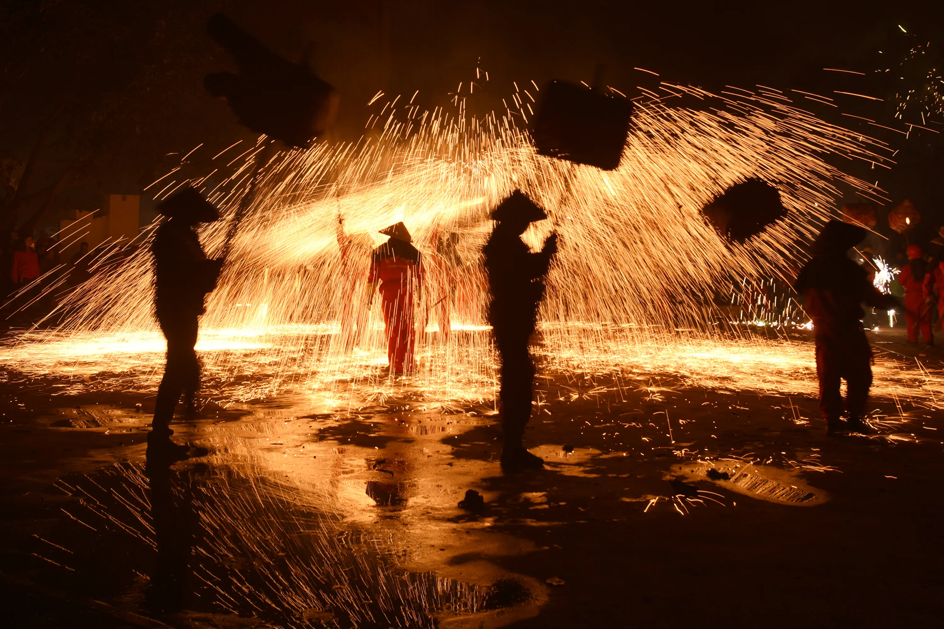 Folk artists holding lanterns perform under a shower of molten iron sparks during a local celebration ahead of the Chinese Lantern Festival, in Luzhou, Sichuan province, China on February 18, 2019. (Photo by Reuters/China Stringer Network)