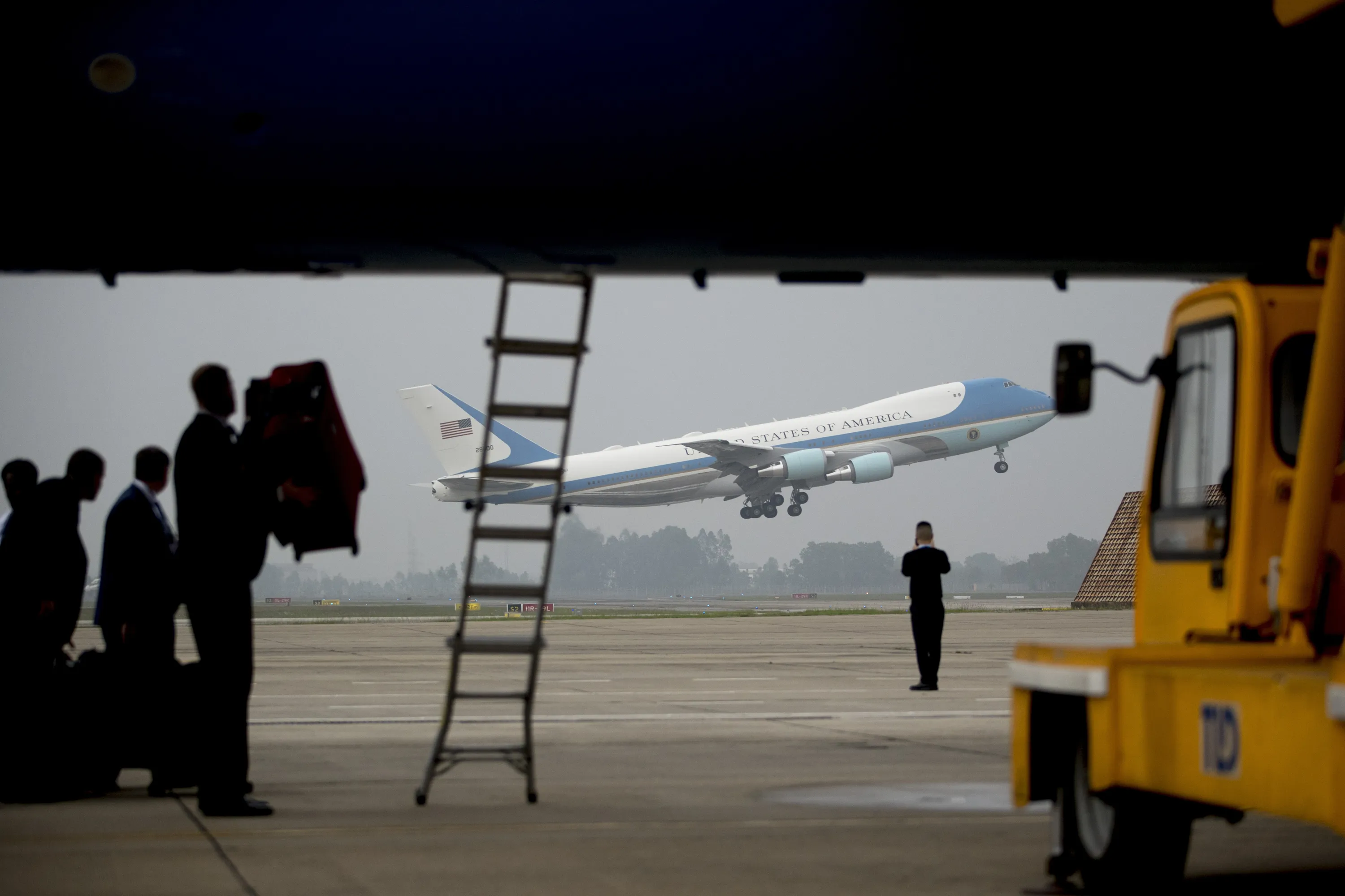 Air Force One with President Donald Trump aboard takes off at Nom Bar International Airport in Hanoi, Vietnam, Thursday, February 28, 2019, to travel to Washington. (Photo by Andrew Harnik/AP Photo/Pool)