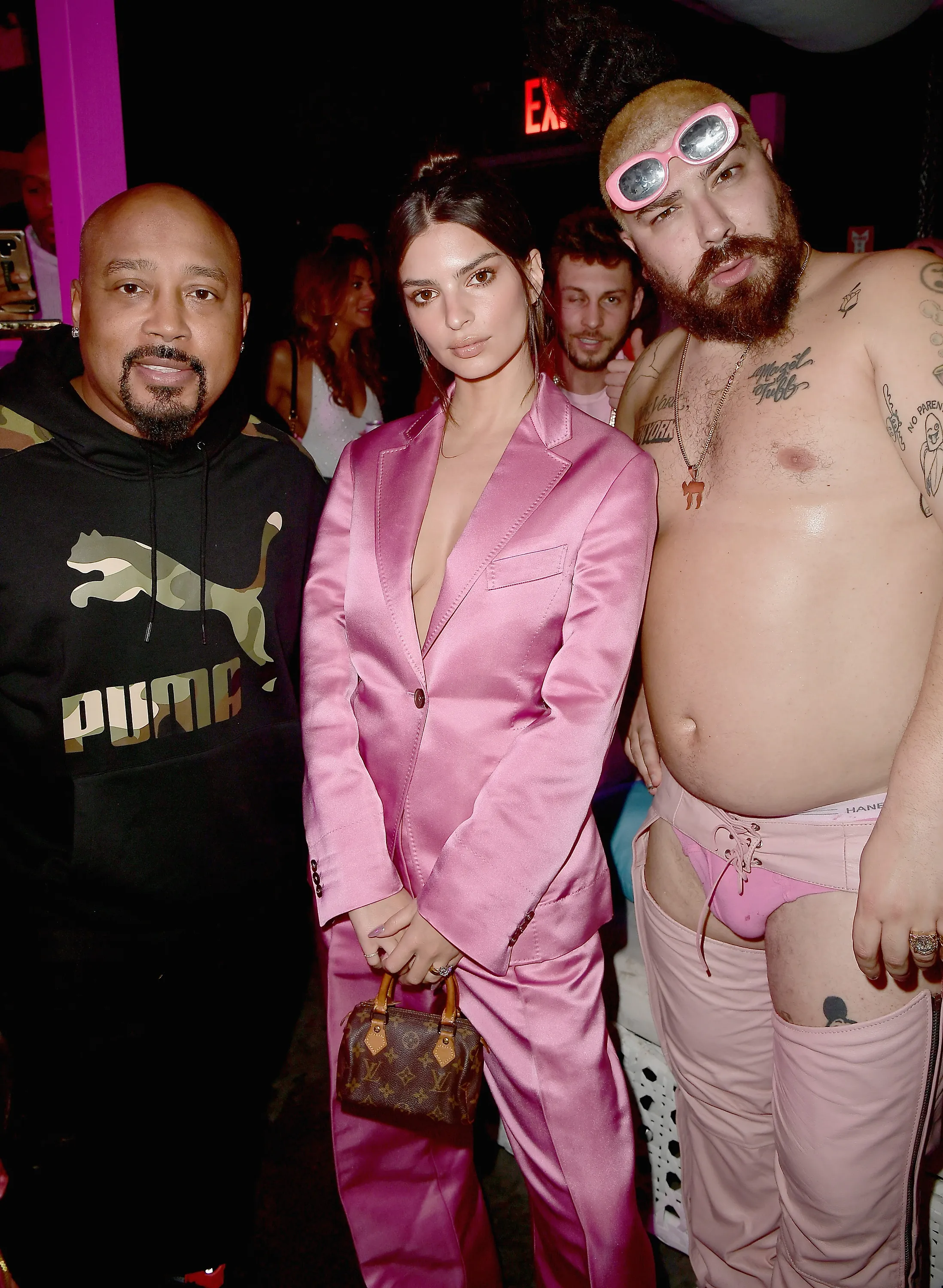 Daymond John, Emily Ratajkowski and Josh Ostrovsky aka The Fat Jew attend the Pink Party III Hosted By BABE And Tarte at Villian on February 23, 2019 in Brooklyn, New York. (Photo by Chance Yeh/Getty Images for BABE)