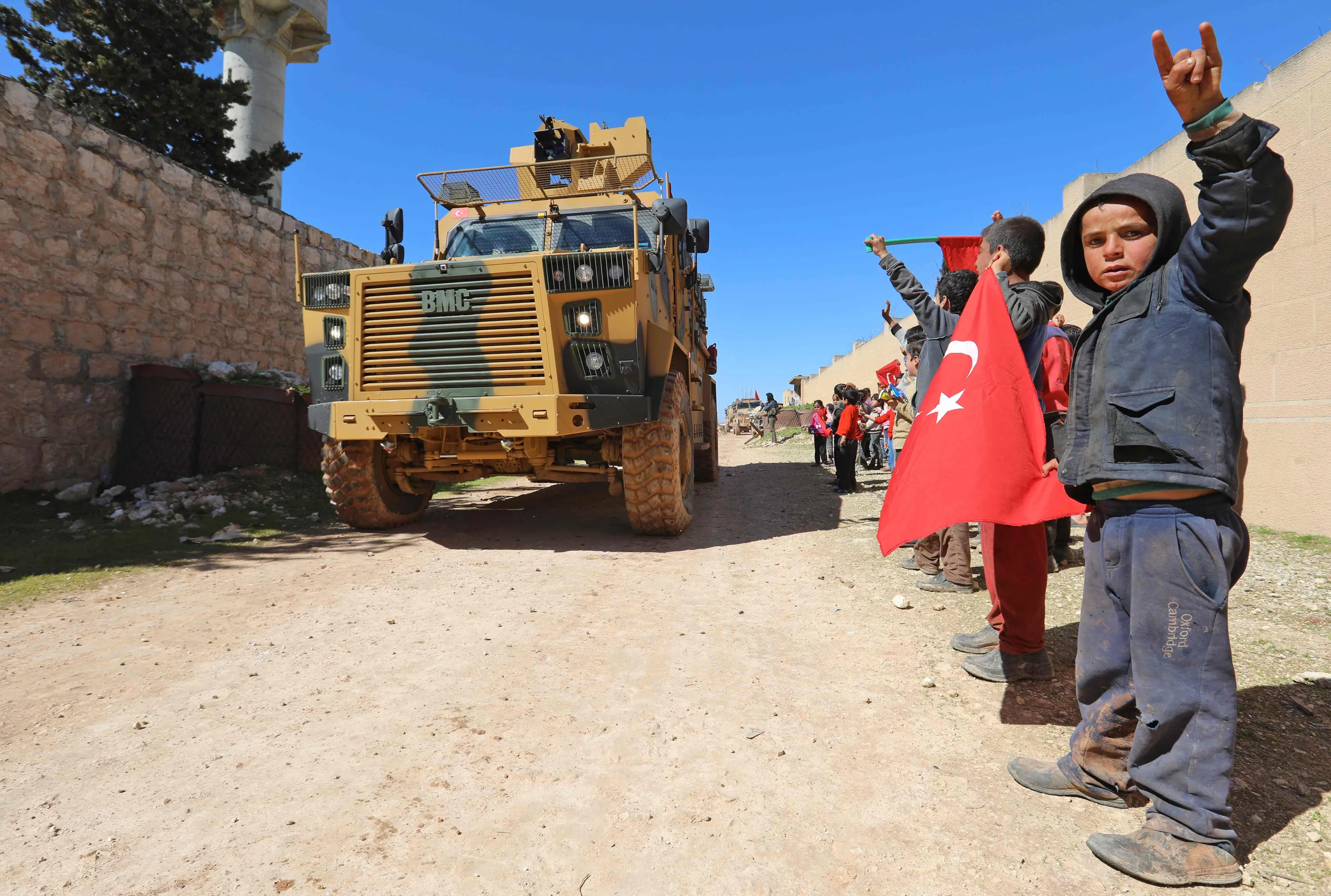An armoured Turkish military vehicle drives on a patrol along a road in the de-militarised zone in the western countryside of Syria's Aleppo province near the town of Al-Eis on March 8, 2019. In September 2018, Syrian rebel backer Turkey and regime ally Russia inked a deal to set up a buffer zone in northern Syria. Russia halted an imminent regime offensive many feared could lead to the Syrian conflict's worst bloodbath yet, in exchange for which Turkey was to remove jihadists from the edges of the region. (Photo by Omar Haj Kadour/AFP Photo)
