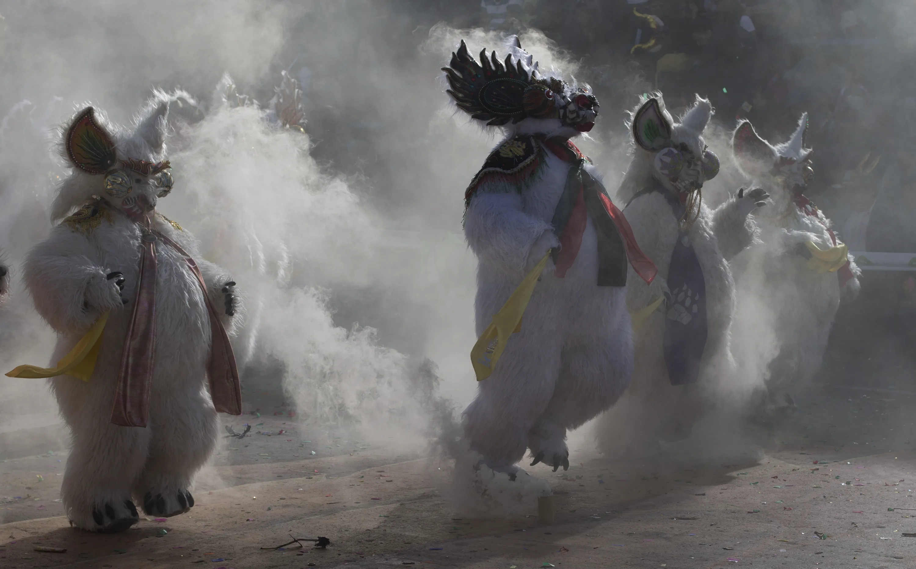 Dancers perform the traditional “Diablada”, or Dance of the Devils, during carnival celebrations in Oruro, Bolivia, Saturday, March 2, 2019. The festival features folk dances, costumes, crafts, music and up to 20 hours of continuous partying. (Photo by Juan Karita/AP Photo)