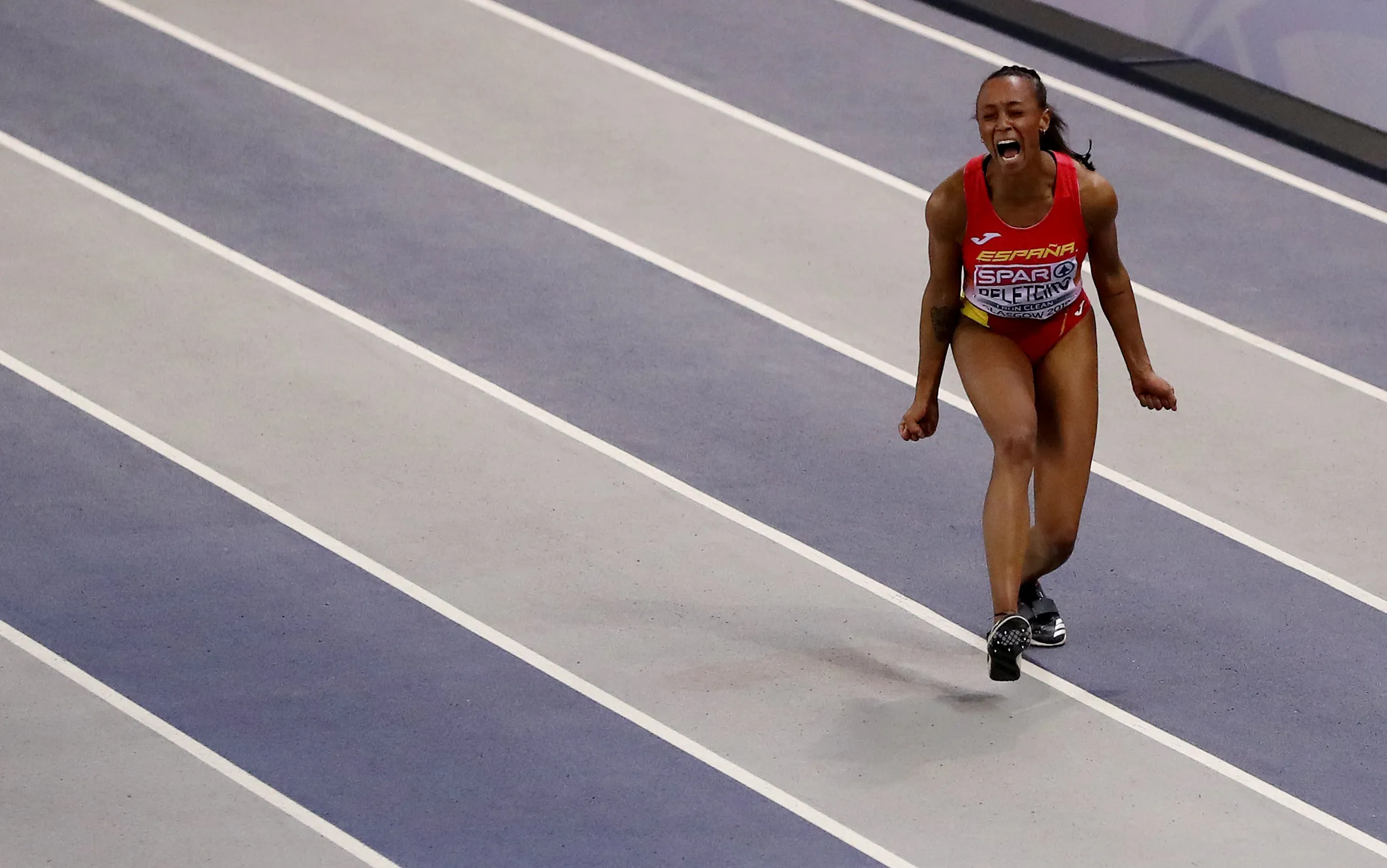 Ana Peleteiro of Spain reacts after jumping 14.73 meters in her fourth attempt in the women's triple jump final at the European Athletics Indoor Championships at the Emirates Arena in Glasgow, Scotland, Sunday, March 3, 2019. (Photo by Lee Smith/Action Images via Reuters)