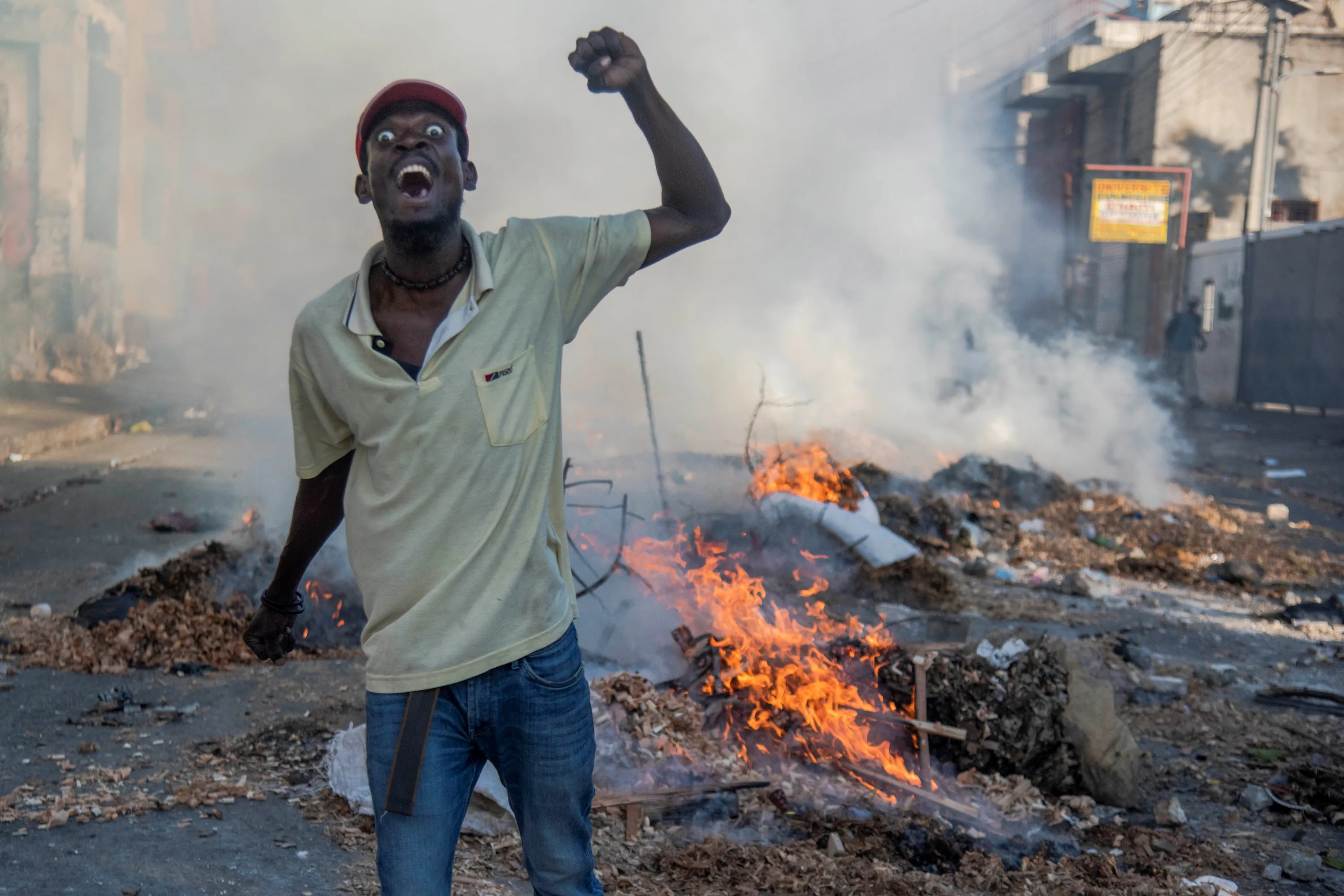 People participate in a protest in Port-au-Prince, Haiti, 09 February 2019. Tension remains high in Haiti after the massive protest held on 07 February against the country's president, Jovenel Moise, and mobilizations called by the opposition continue despite the call for calm and dialogue by the president. (Photo by Jean Marc Herve Abelard/EPA/EFE)